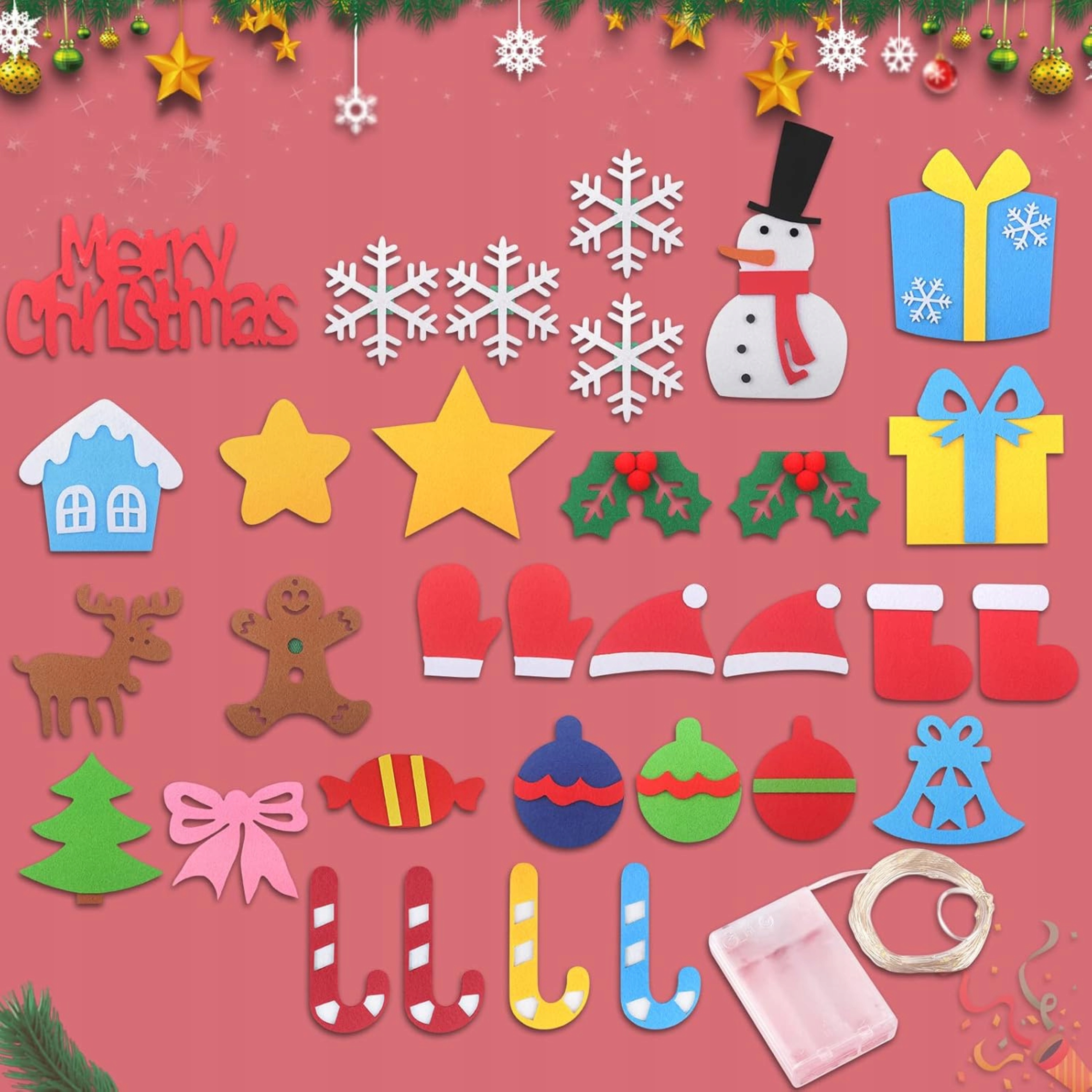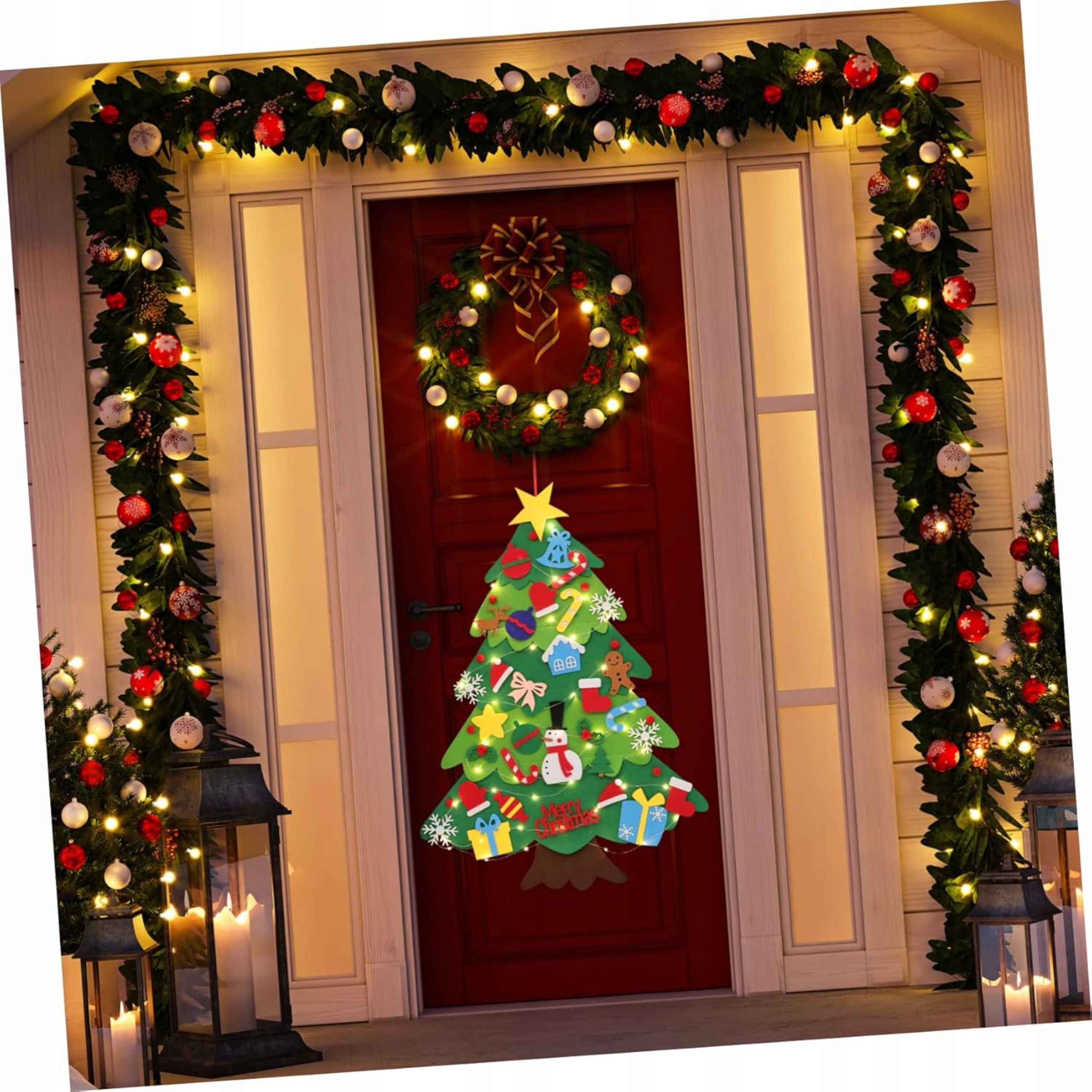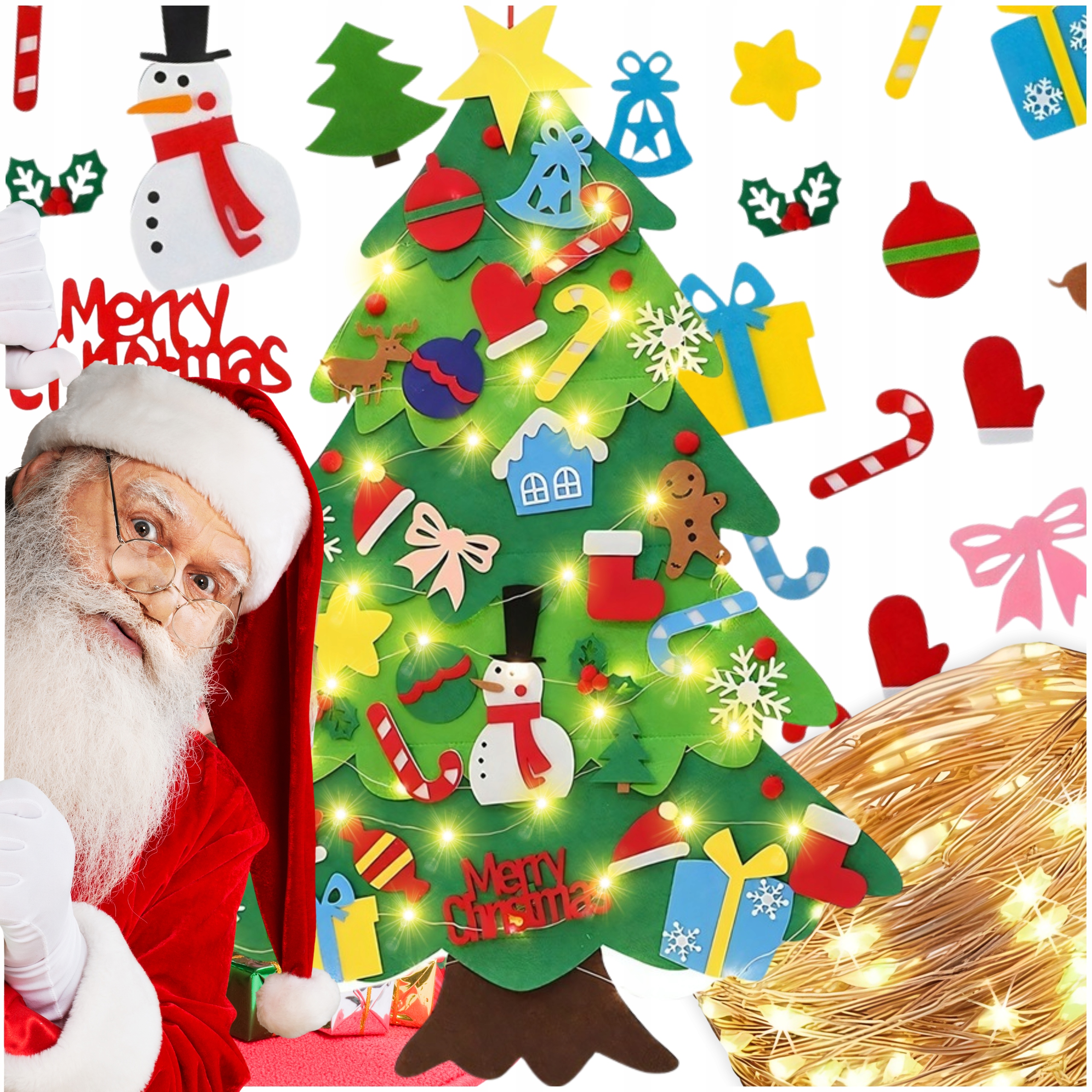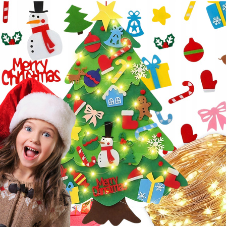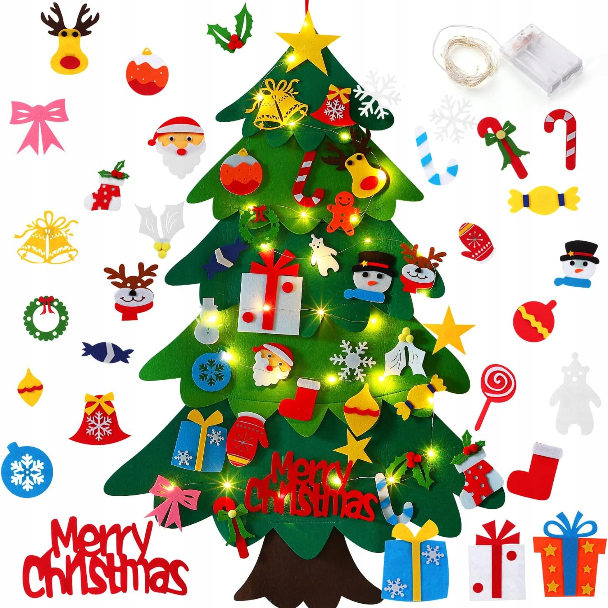 CHOINKA Z FILCU Z OZDOBAMI ŁAŃCUCH LED DLA DZIECI 100cm KREATYWNA NA ŚWIĘTA