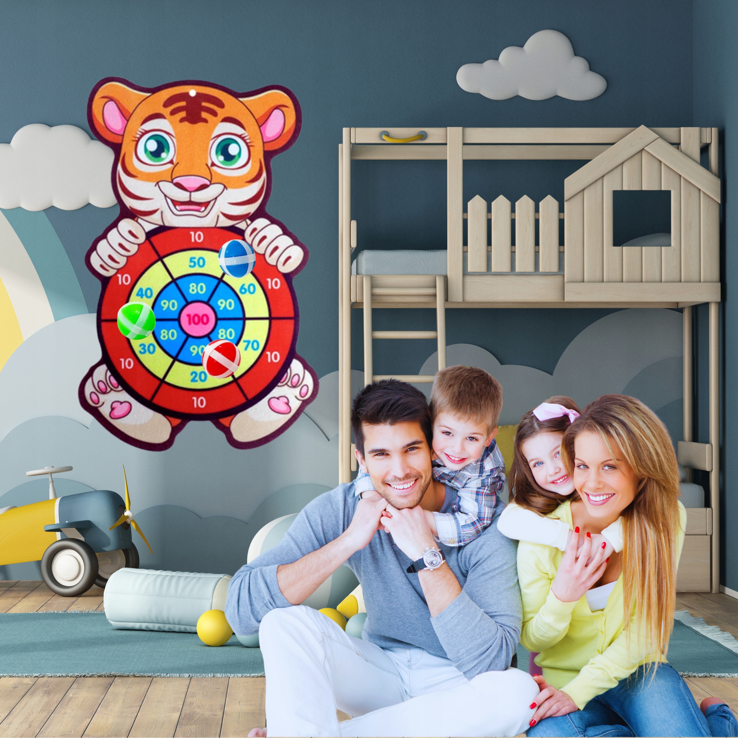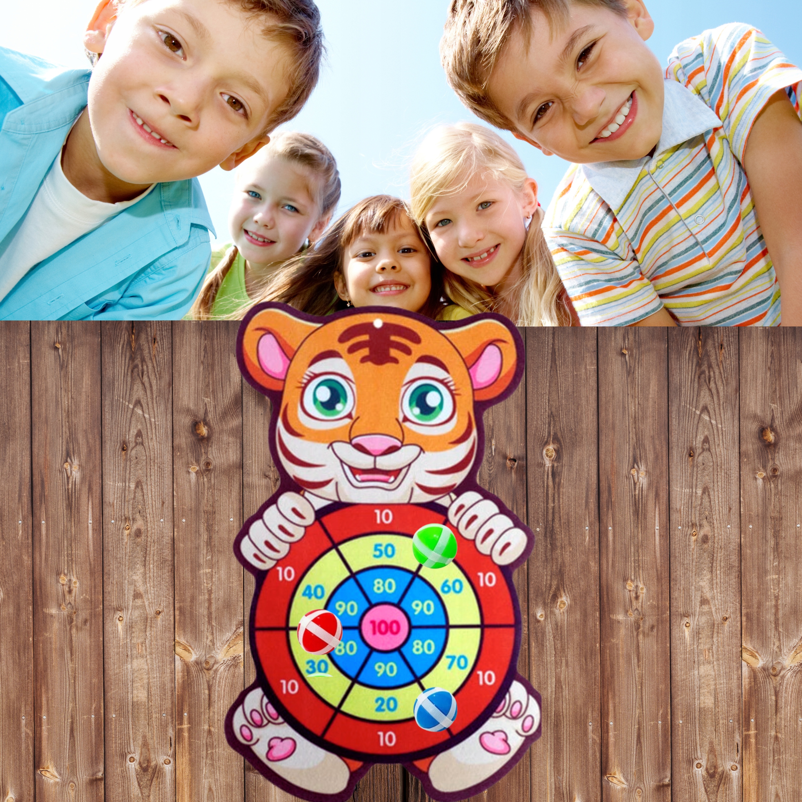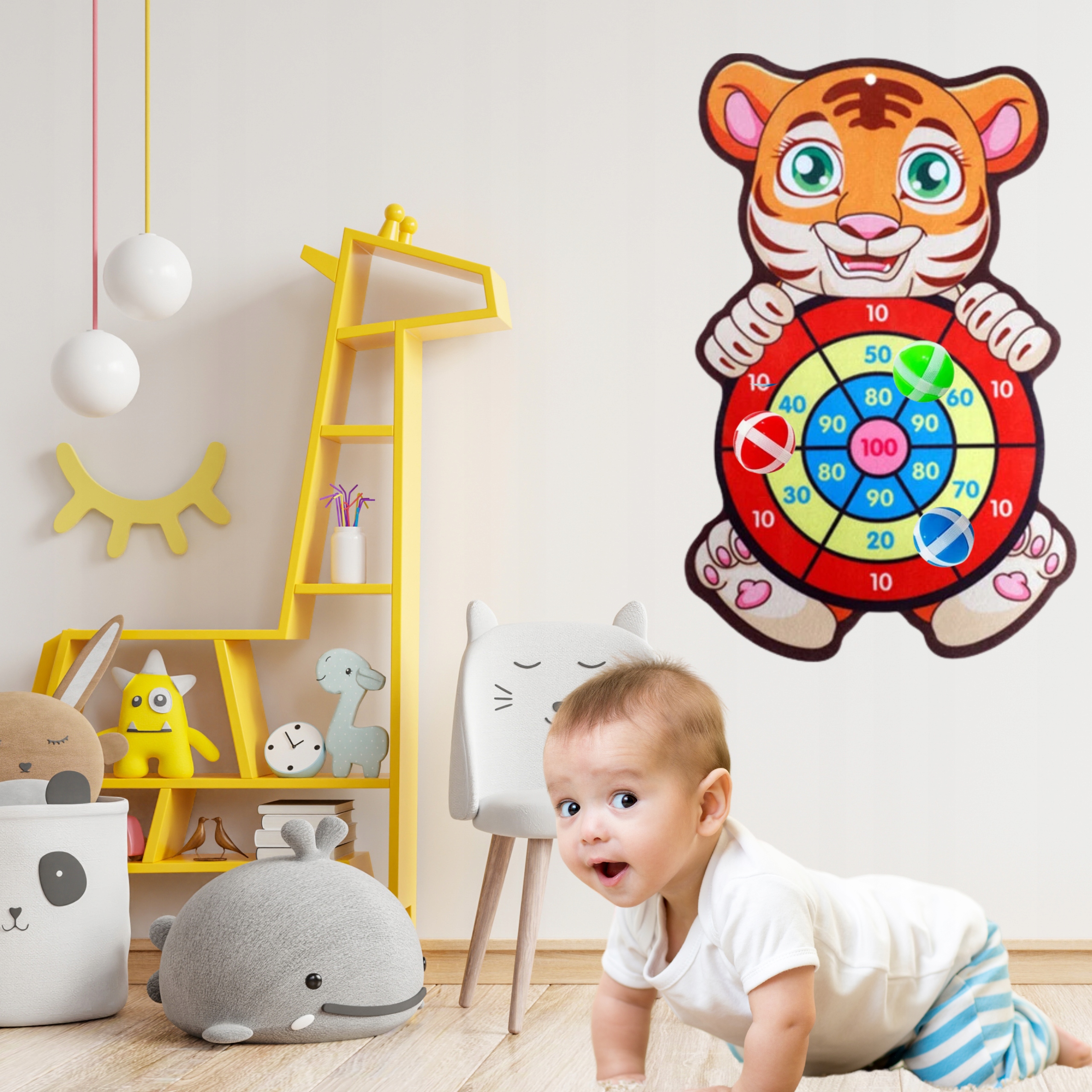 Tarcza przedstawia wesoły wizerunek tygrysa, który zachęca do zabawy. Uroczy tygrys o żywych kolorach natychmiast przyciągnie uwagę Twojego dziecka. Kolorowy design sprawia, że każde trafienie to sukces!