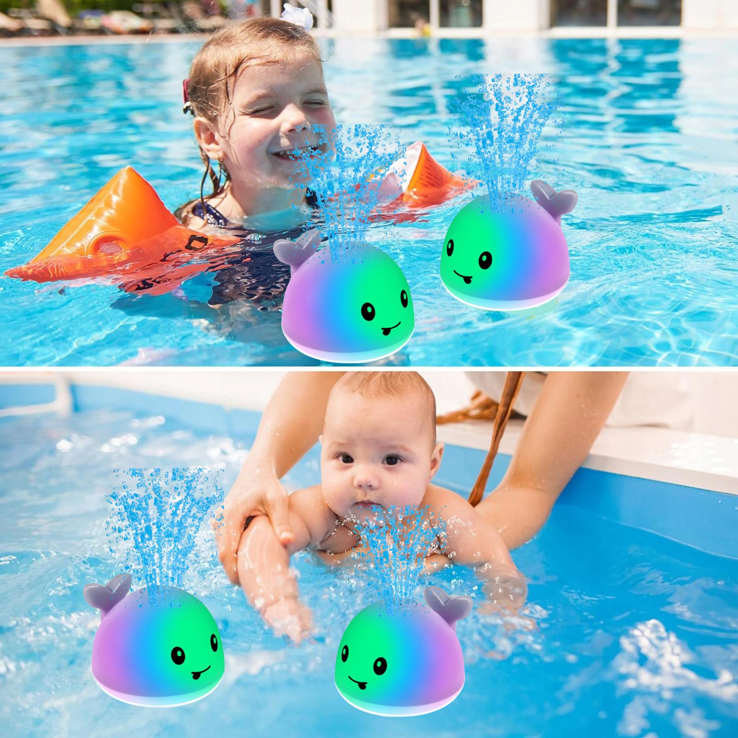 - Automatyczne Uruchomienie: Gdy zabawka dotknie wody, wbudowany czujnik wody automatycznie uruchomi jej funkcje. Zacznie się świecić i wytwarzać mini fontannę.
