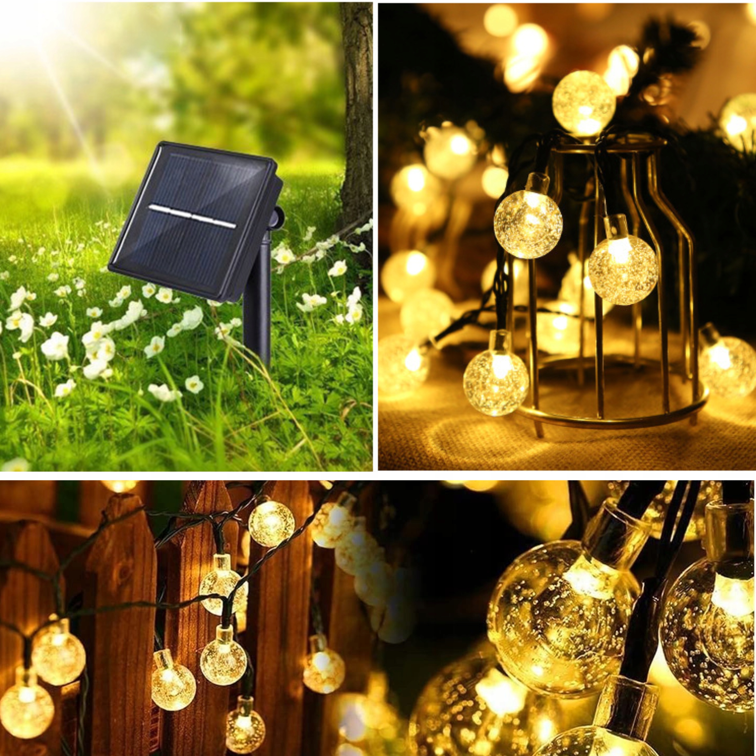 GIRLANDA SOLARNA OGRODOWA LAMPKI SOLARNE KULKI ŻARÓWKI WBIJANA Z CZUJNIKIEM
