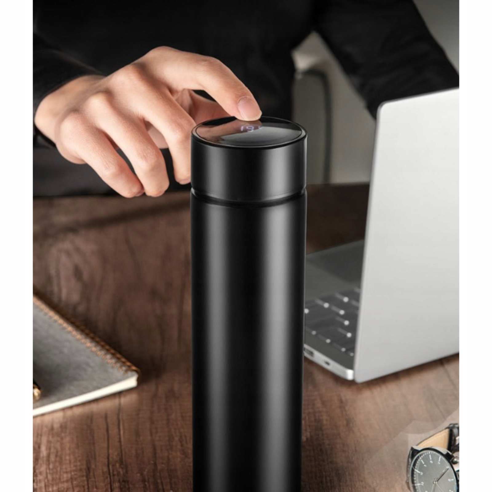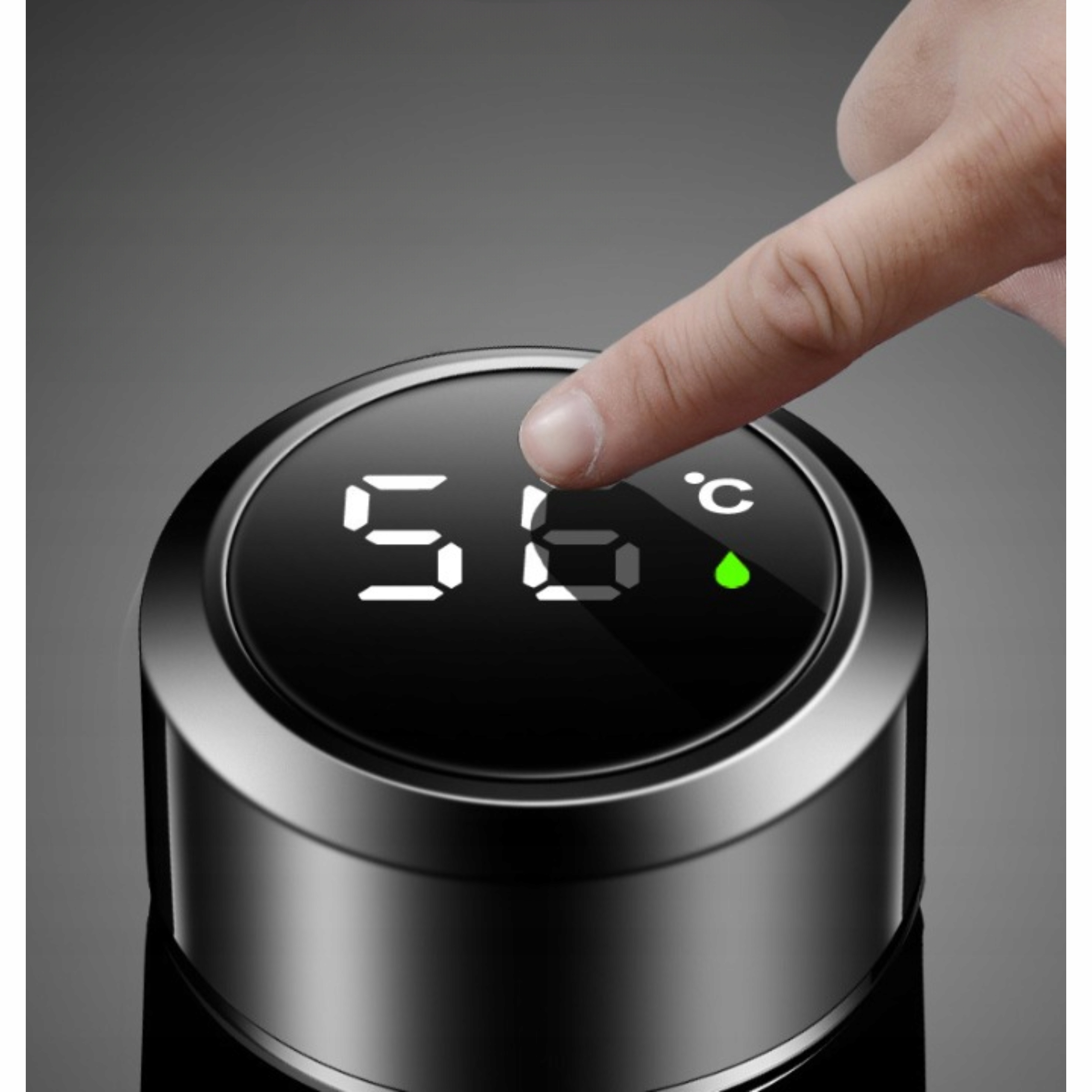 2️⃣ Dotykowy ekran LCD wbudowany w nakrętkę, który pokazuje aktualną temperaturę napoju
