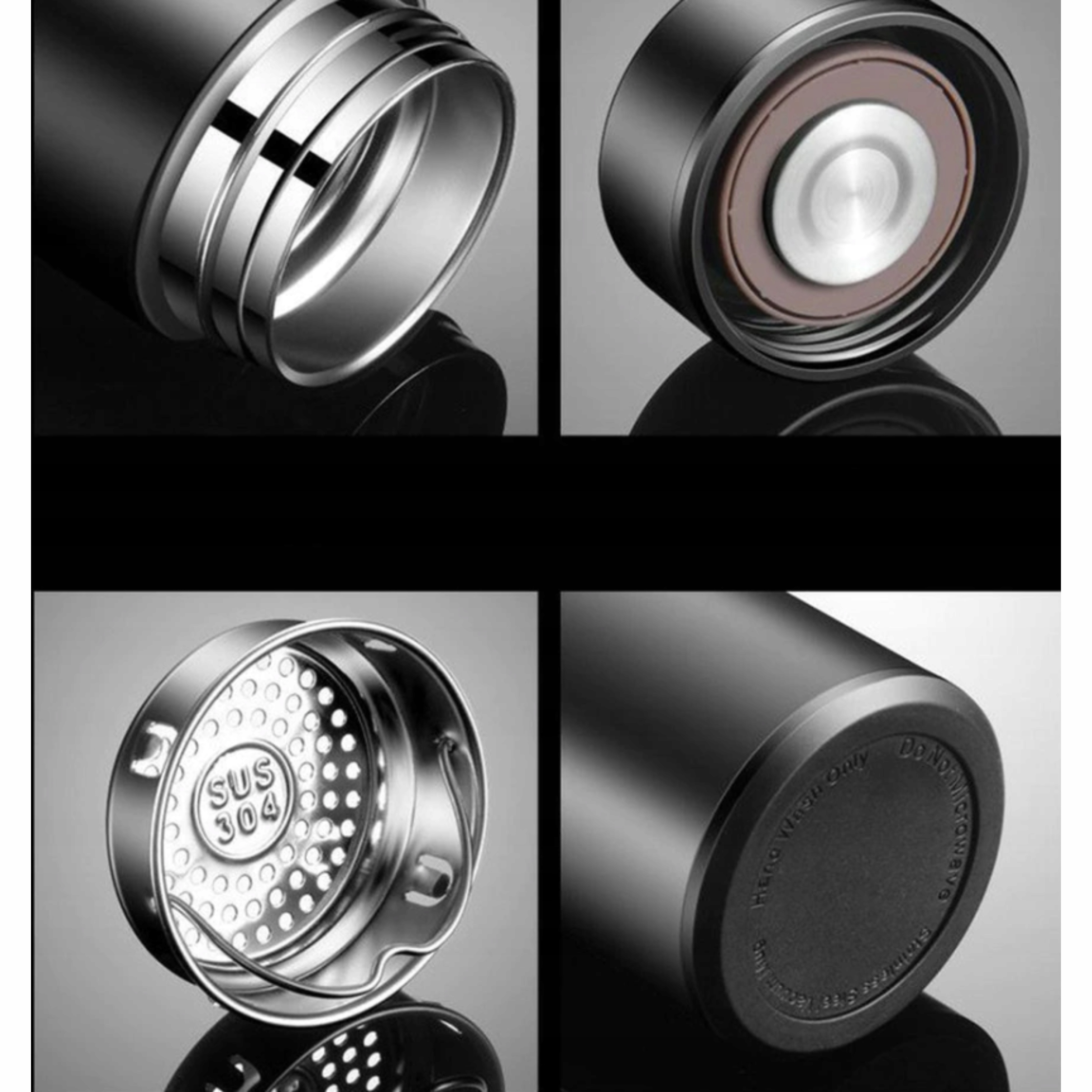 1️⃣ Wykonany ze stali nierdzewnej SUS 304 - za izolację napojów odpowiada stal nierdzewna SUS 304, która nie wpływa na smak przechowywanych napojów, nie rdzewieje i nie odkształca się.
