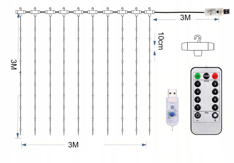LAMPKI DRUCIKI 3x3m USB NA OKNO SCHODY OGRÓD