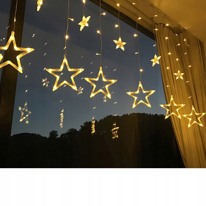 KURTYNA ŚWIETLNA LED GWIAZDKI Lampki Świąteczne Choinkowe Girlanda Na Okno