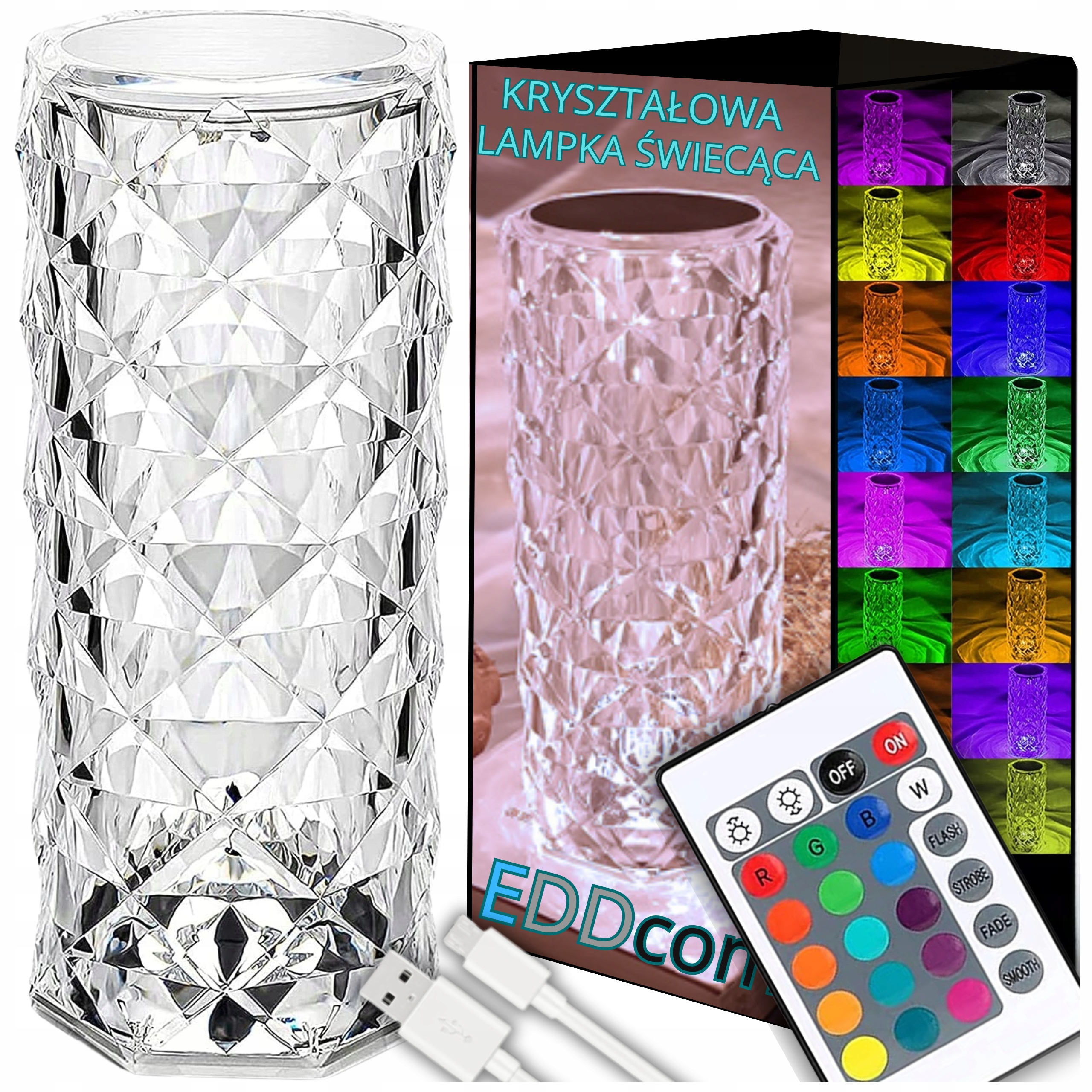 LAMPA KRYSZTAŁOWA LED LAMPKA NOCNA DOTYKOWA DIAMENTOWA KOLOROWA RGB + PILOT