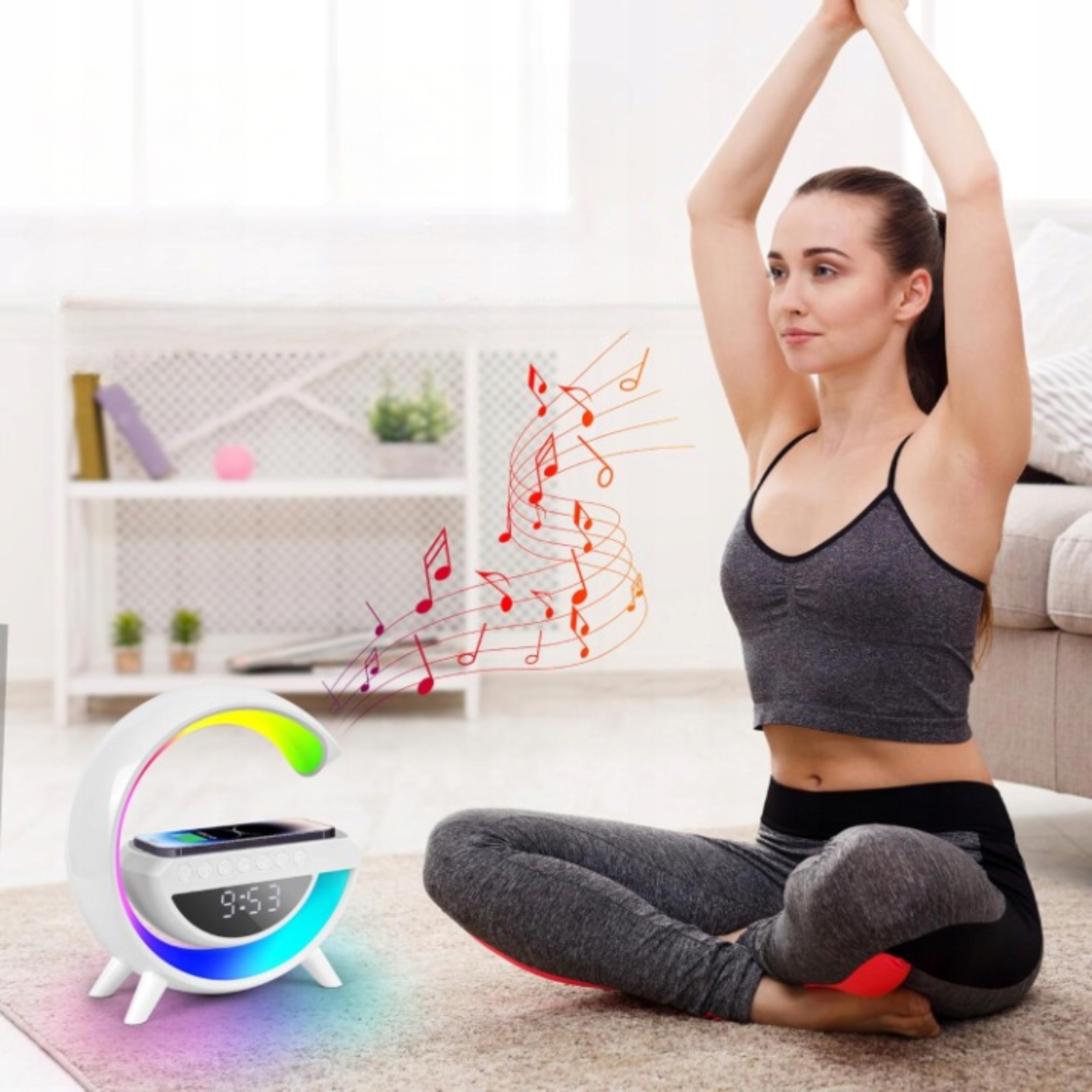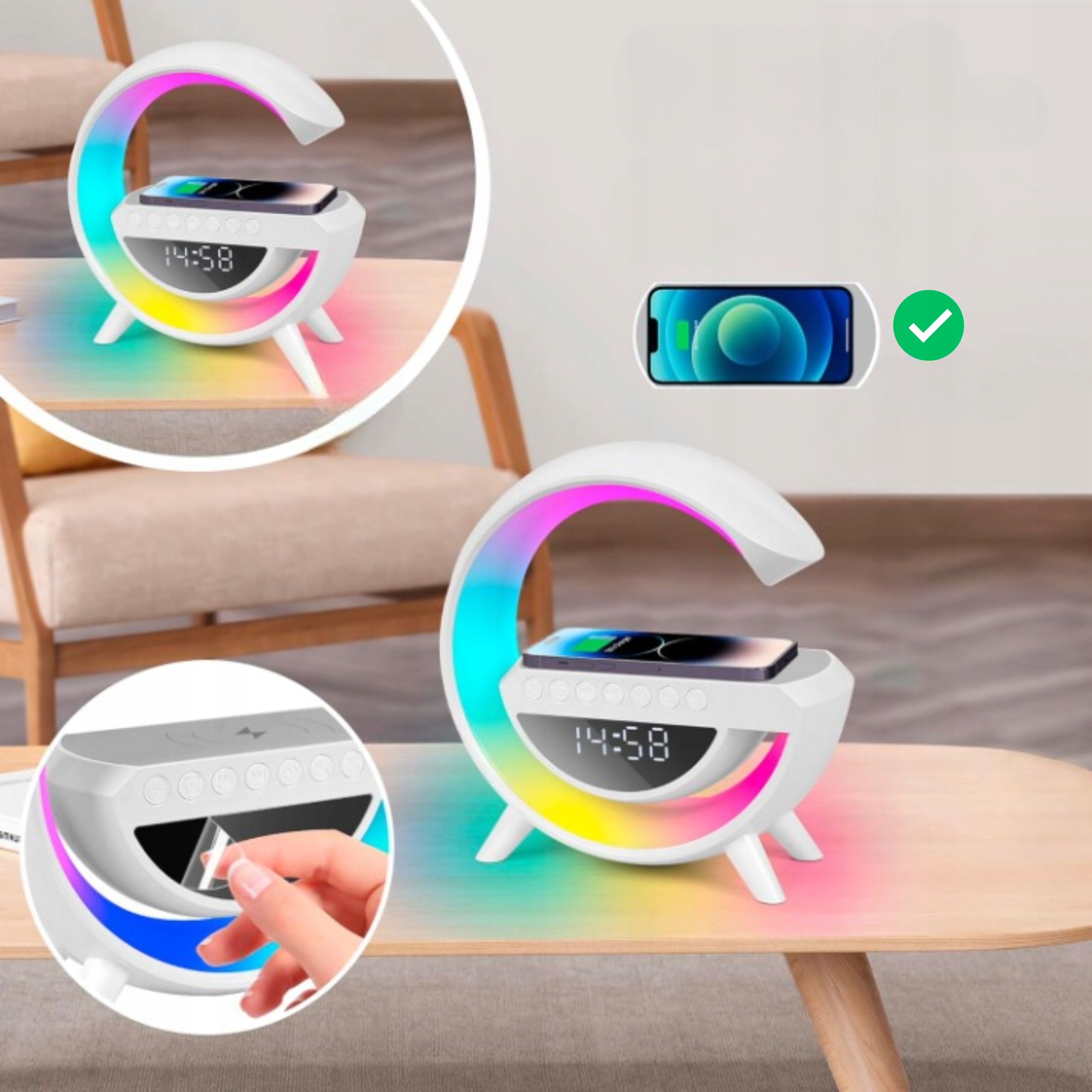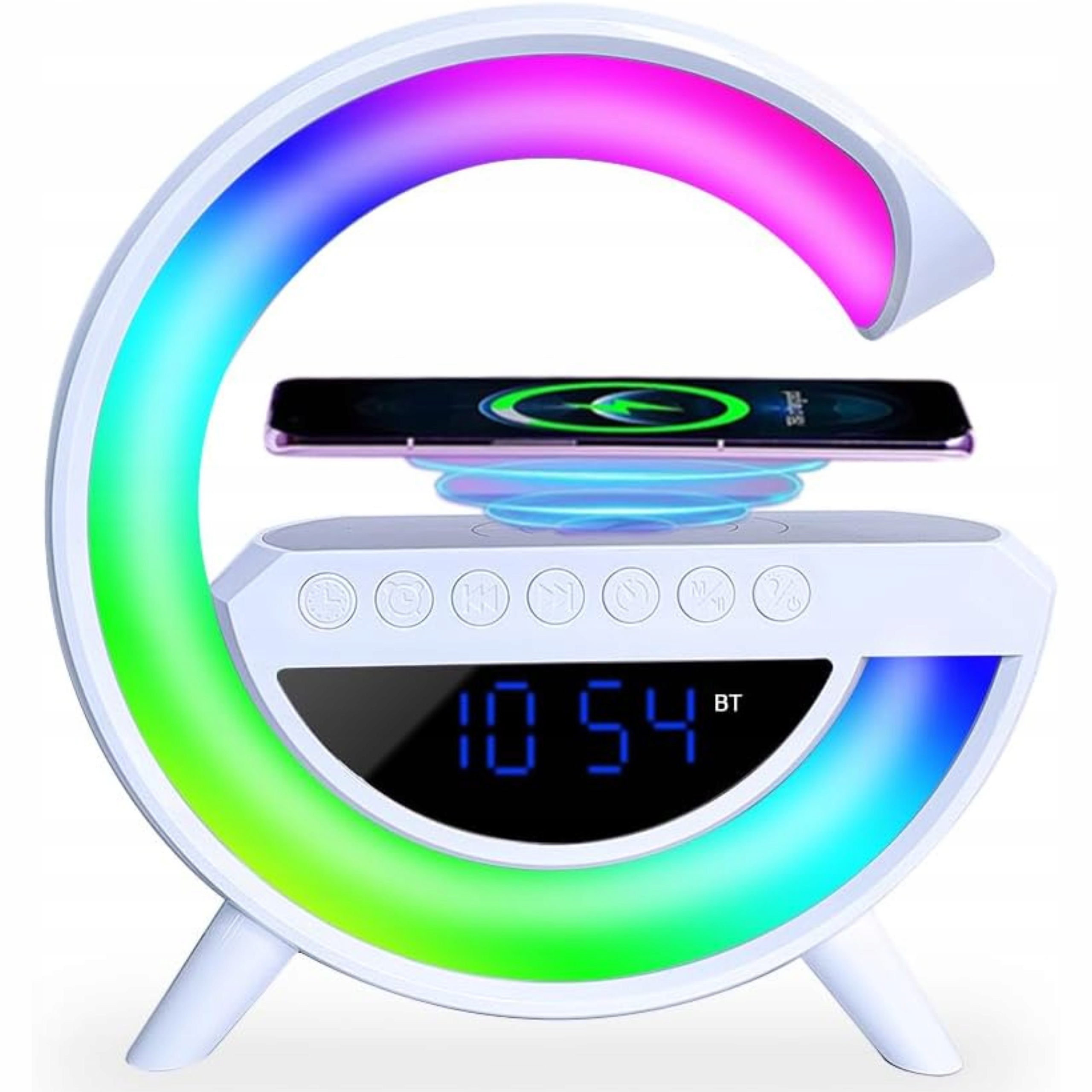 Lampka LED GAMINGOWA RGB Głośnik Ładowarka INDUKCYJNA QI Zegar Radio budzik
