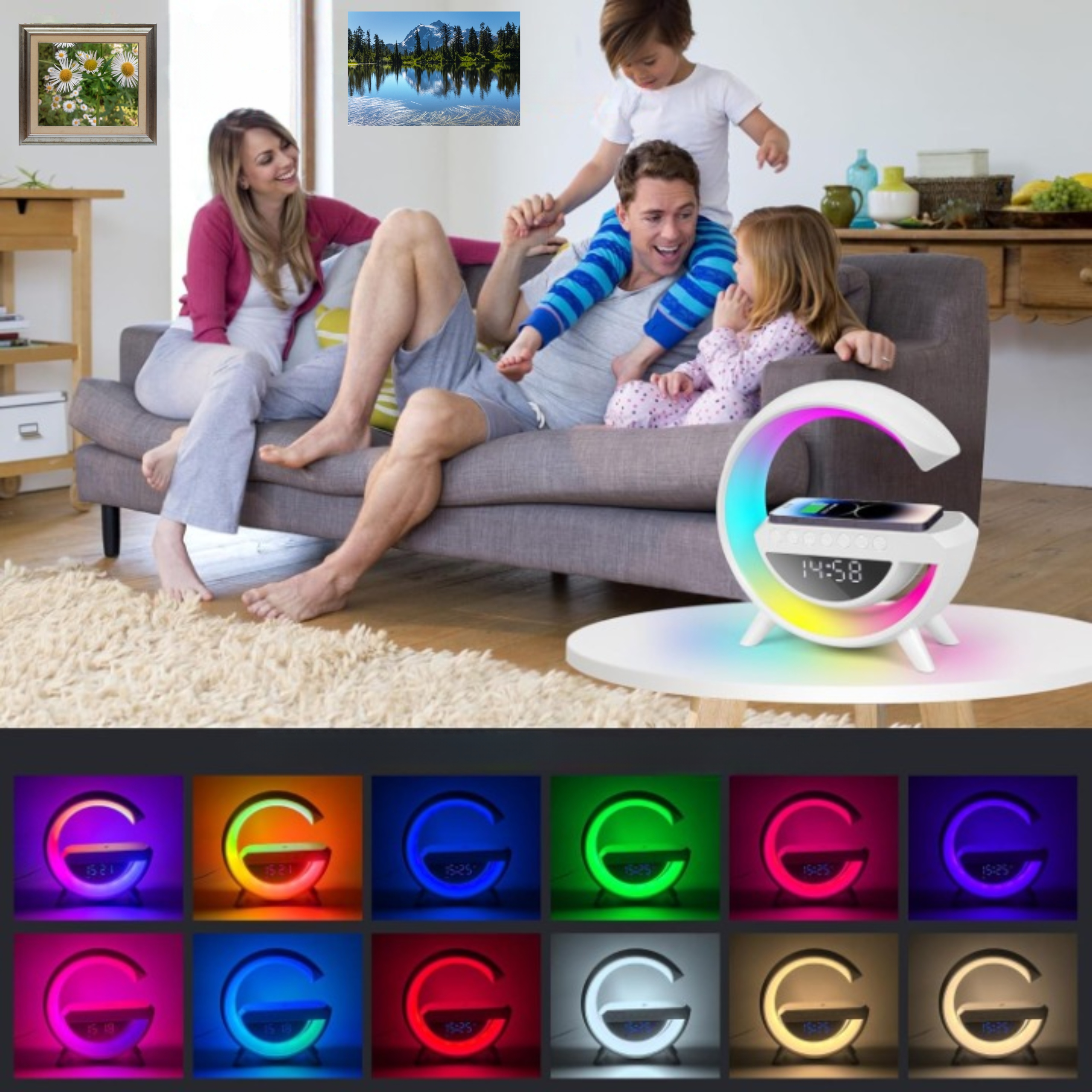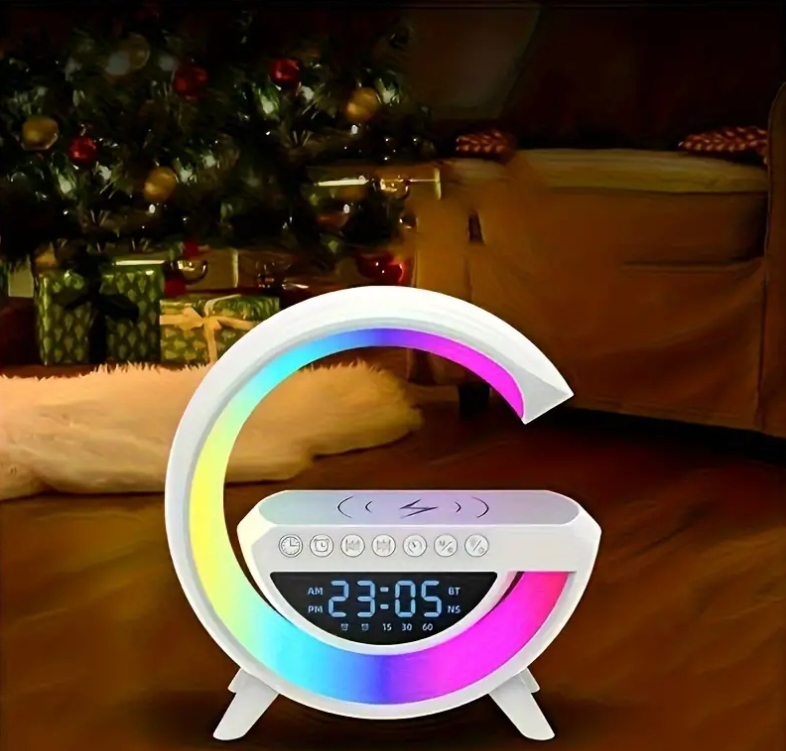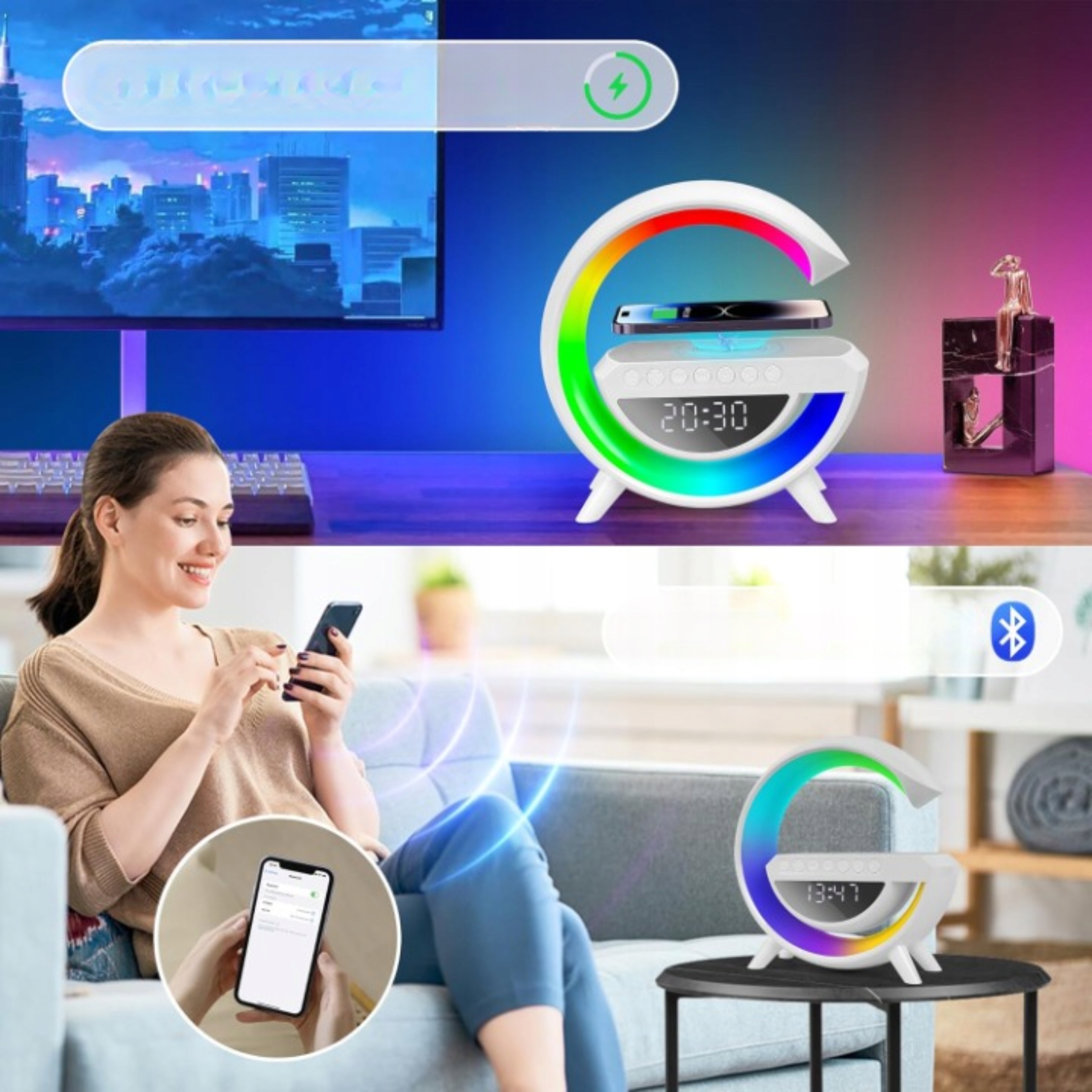 Lampka LED GAMINGOWA RGB Głośnik Ładowarka INDUKCYJNA QI Zegar Radio budzik