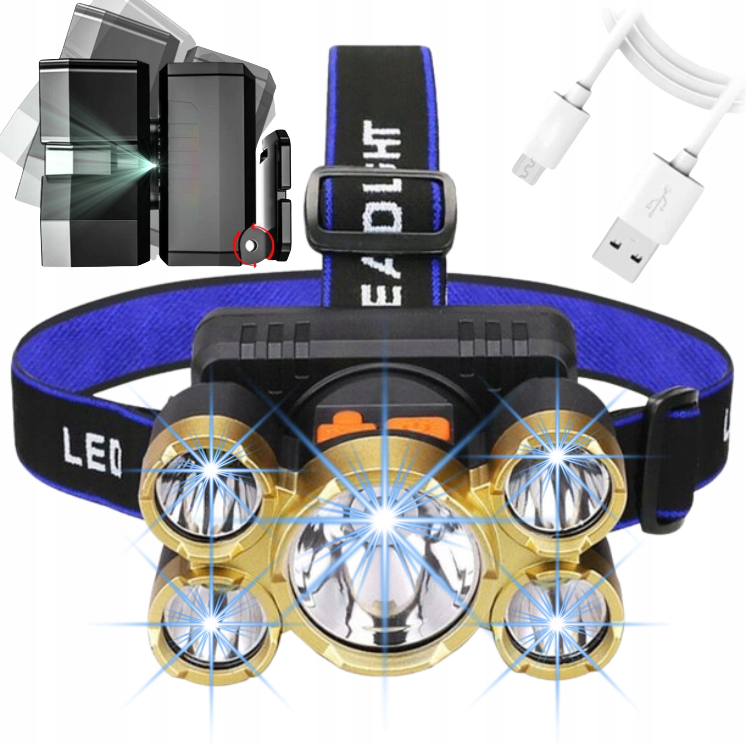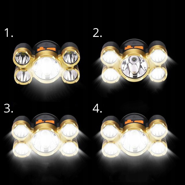 LATARKA CZOŁOWA 5x LED CZOŁÓWKA MOCNA LAMPKA CREE T6 NA GŁOWĘ AKUMULATOROWA