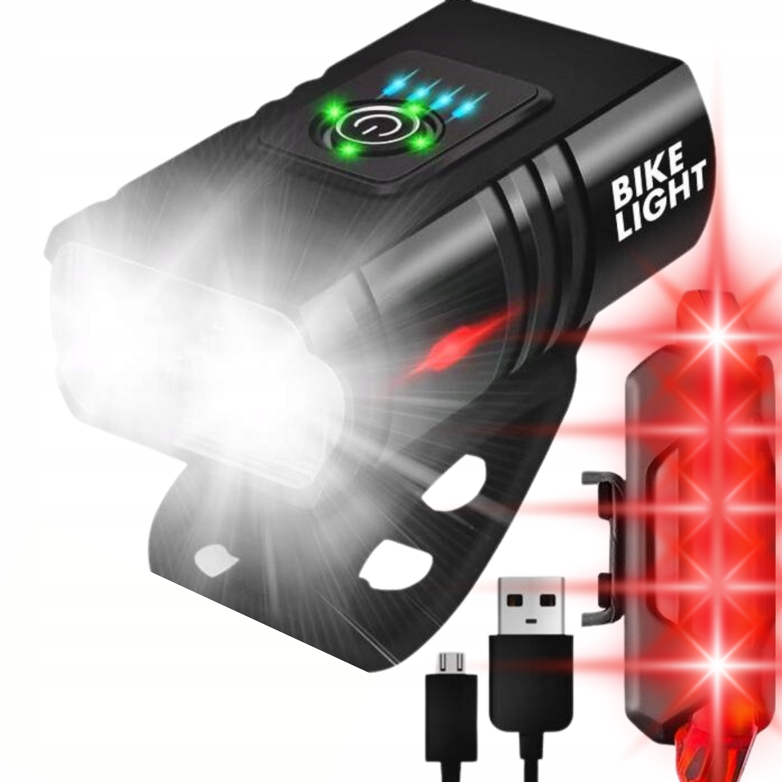 MOCNA LAMPKA ROWEROWA PRZEDNIA TYLNA LED WODOODPORNA AKUMULATOR USB ZESTAW