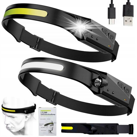 MOCNA LATARKA CZOŁOWA LED REFLEKTOR NA GŁOWĘ COB CZOŁÓWKA USB CZUJNIK RUCHU