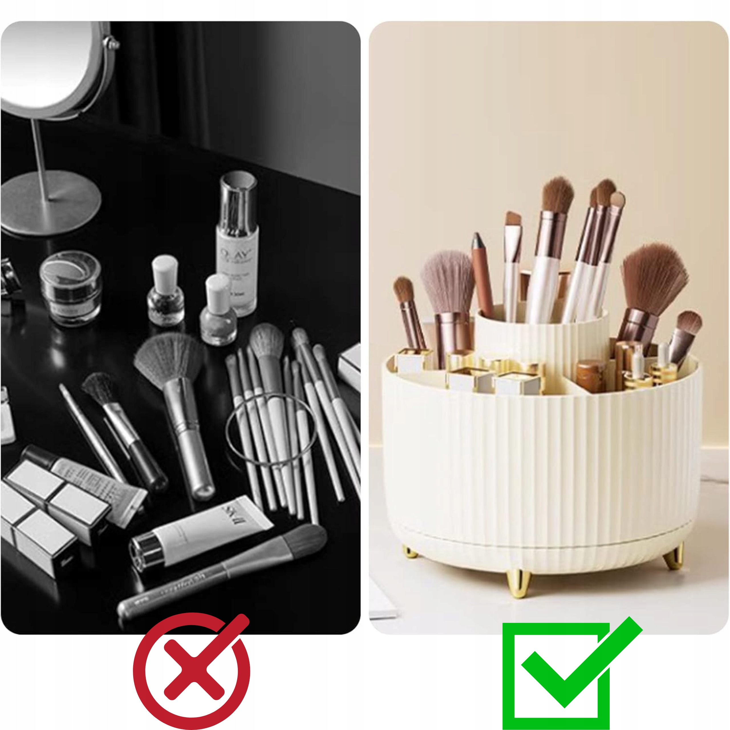 DZIĘKI NASZEMU OBROTOWEMU ORGANIZEROWI NA KOSMETYKI 360°.