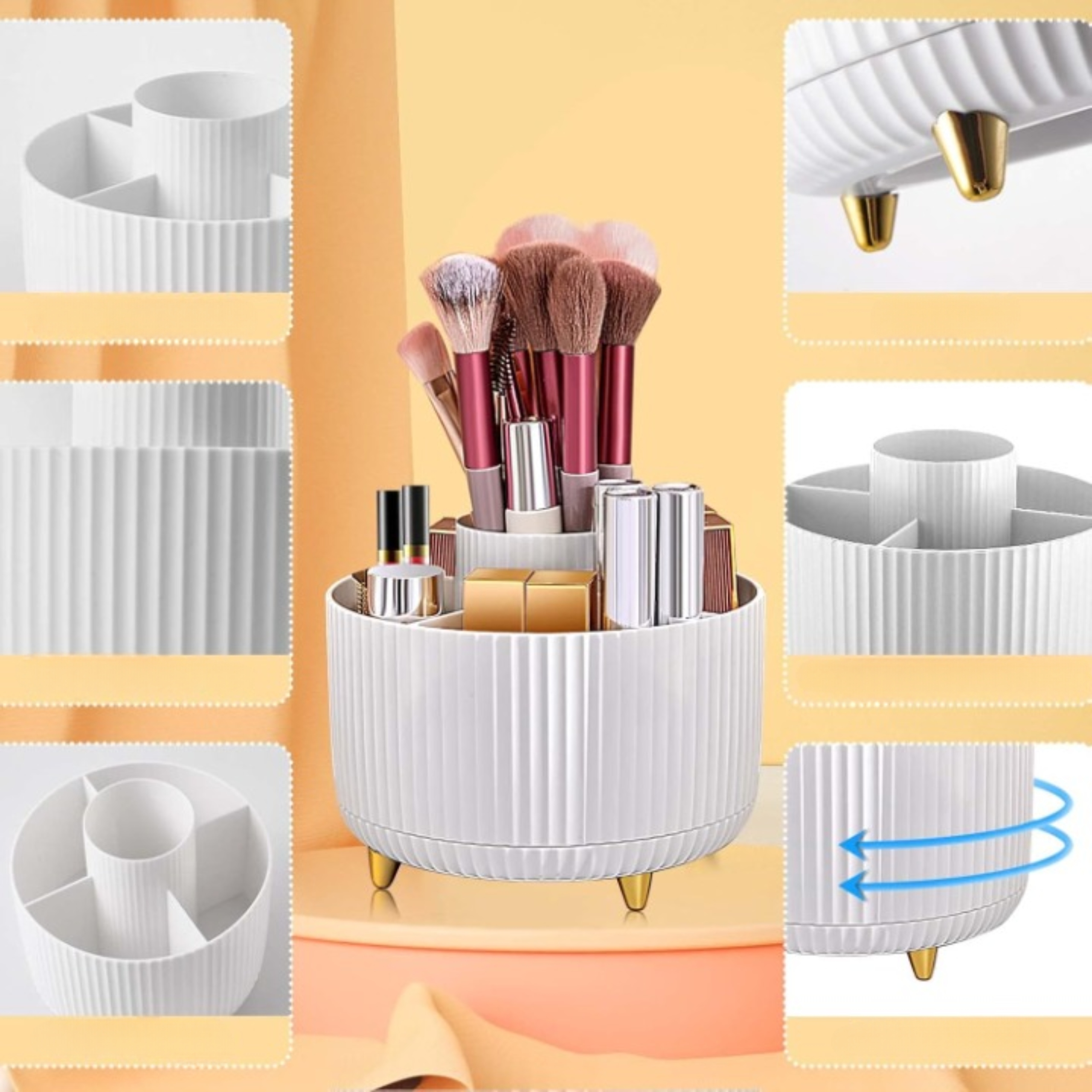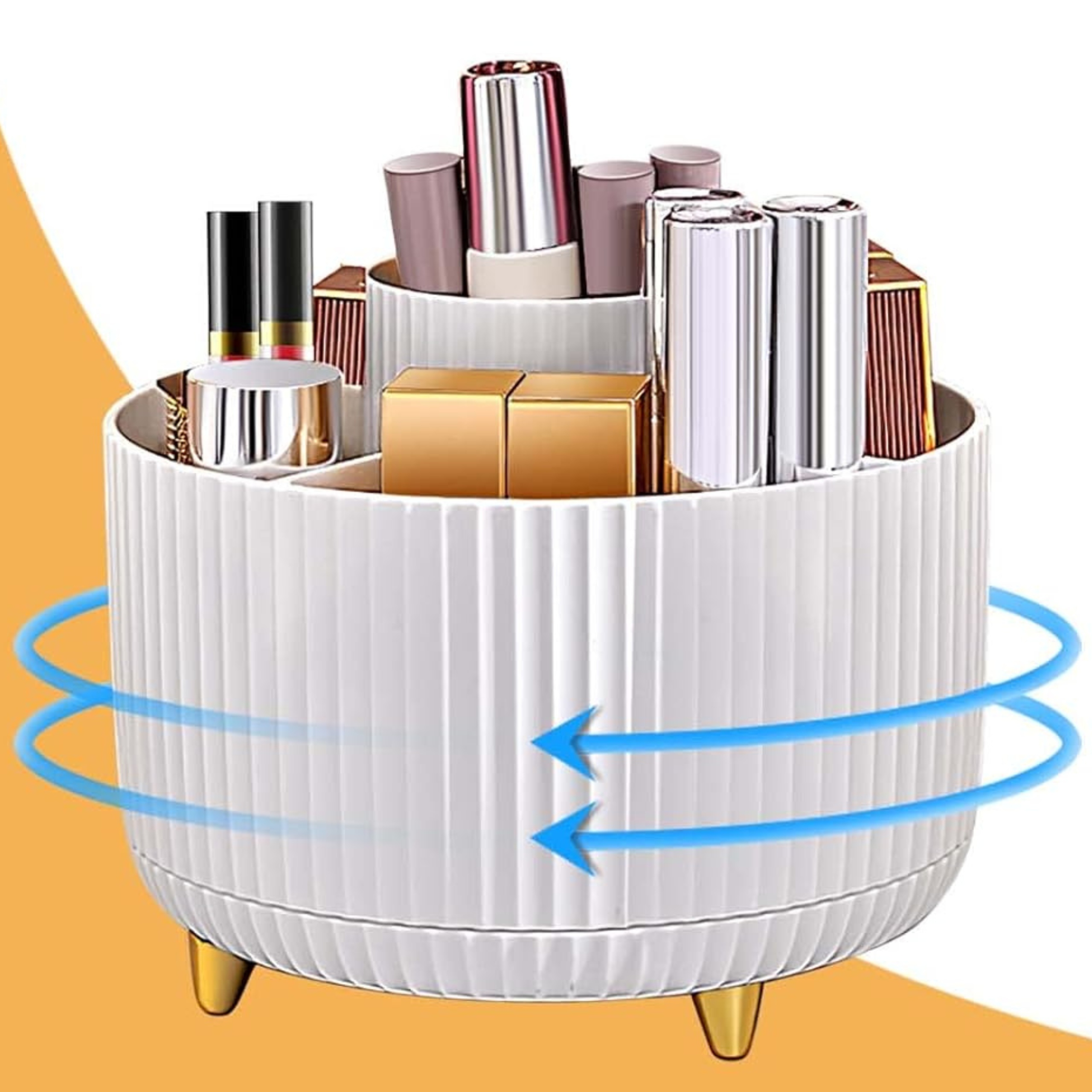 Nasz organizer obraca się o pełne 360 stopni, co umożliwia łatwy dostęp do wszystkich Twoich kosmetyków bez potrzeby przesuwania całego stojaka.