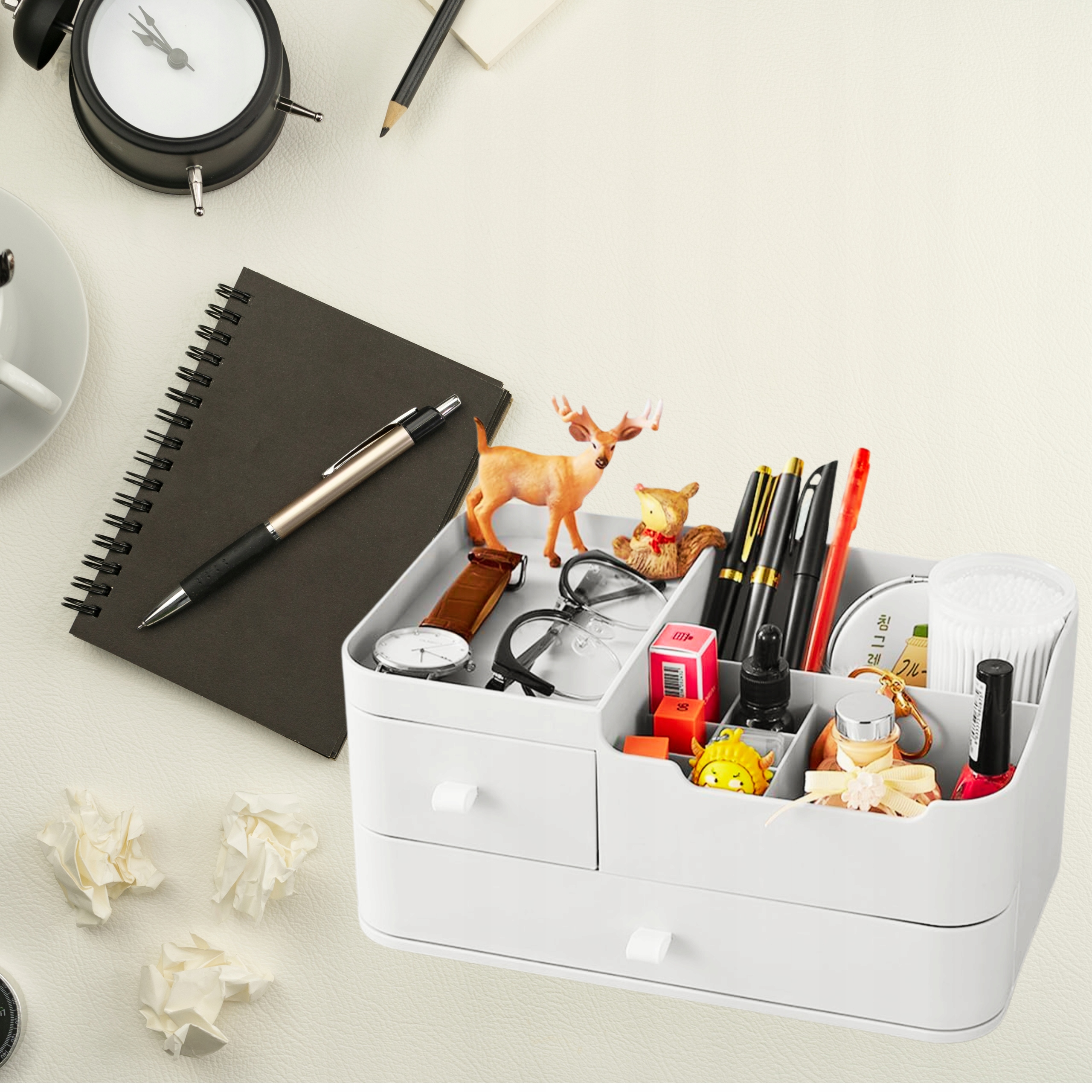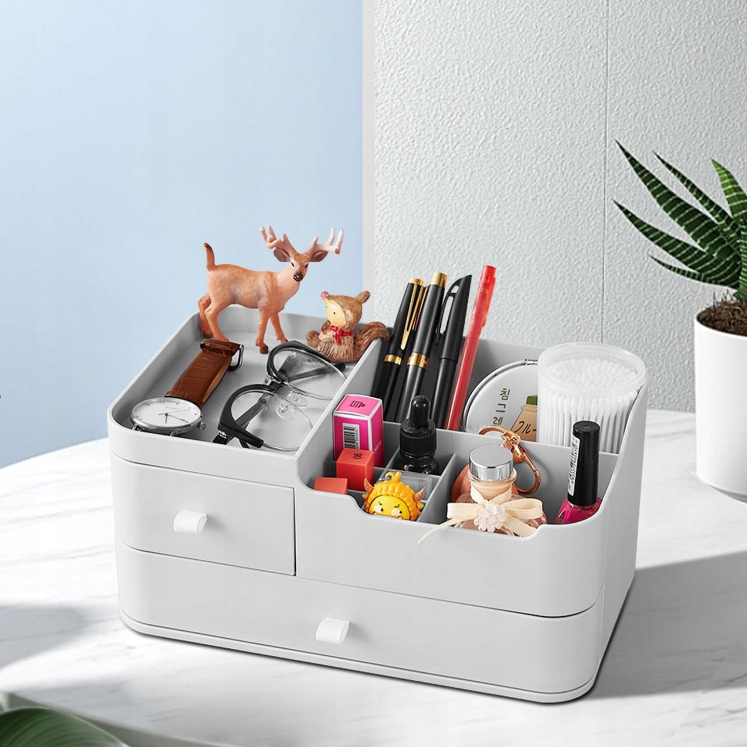 Dwie przestronne szufladki oraz liczne przegrody pozwalają na uporządkowanie wielu przedmiotów.