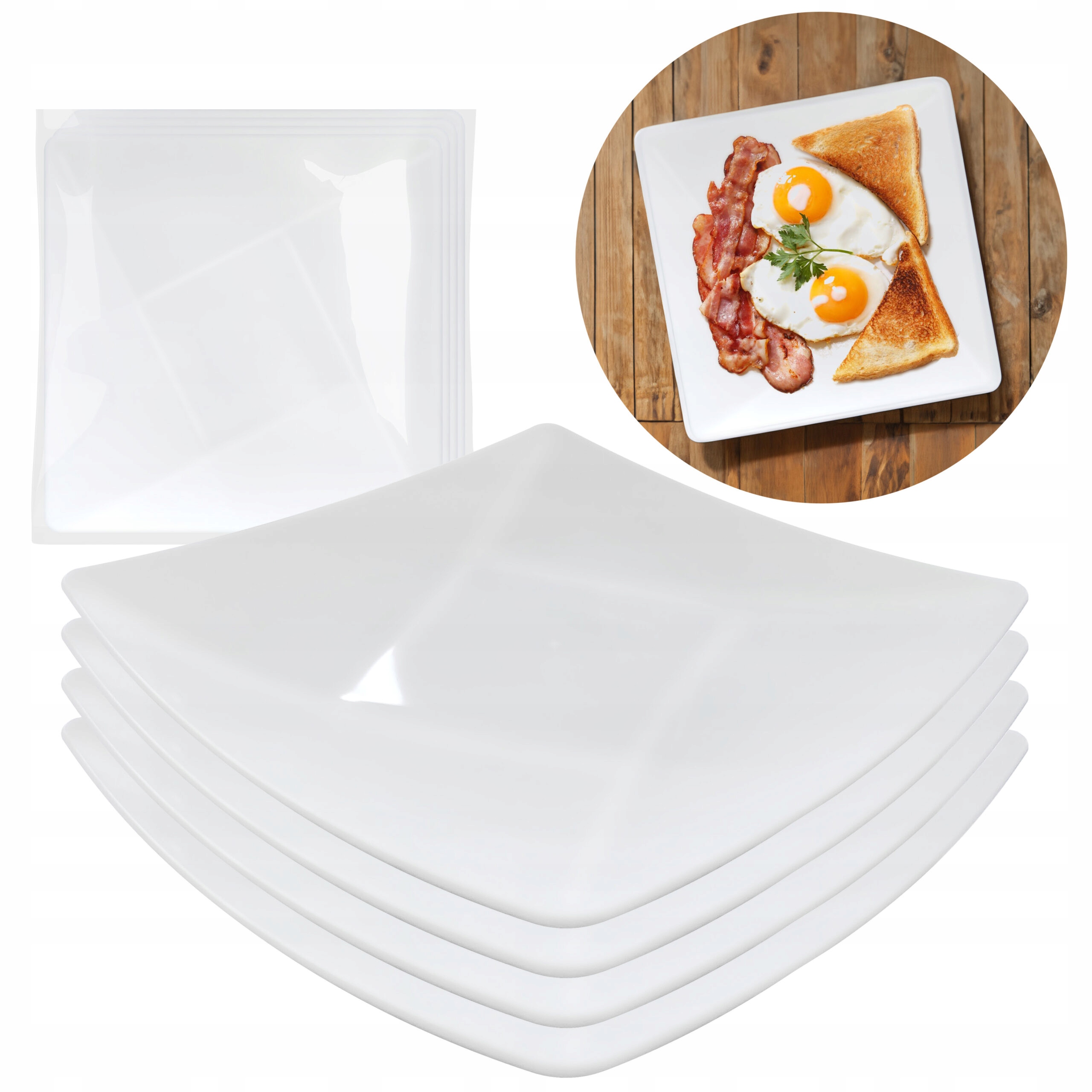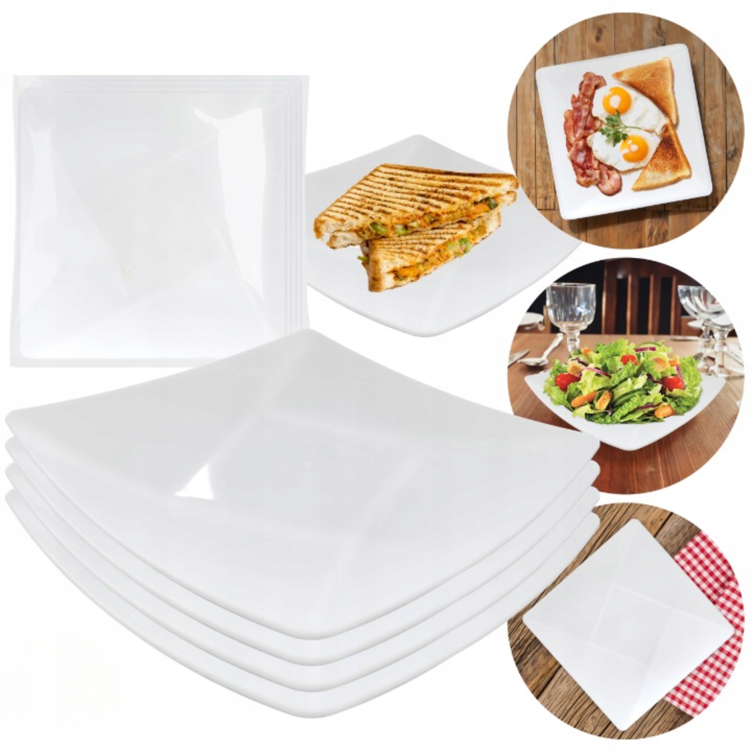SERWIS TALERZ TALERZE OBIADOWY DESEROWY NA GRILLA KWADRATOWY ZESTAW 4 SZT.