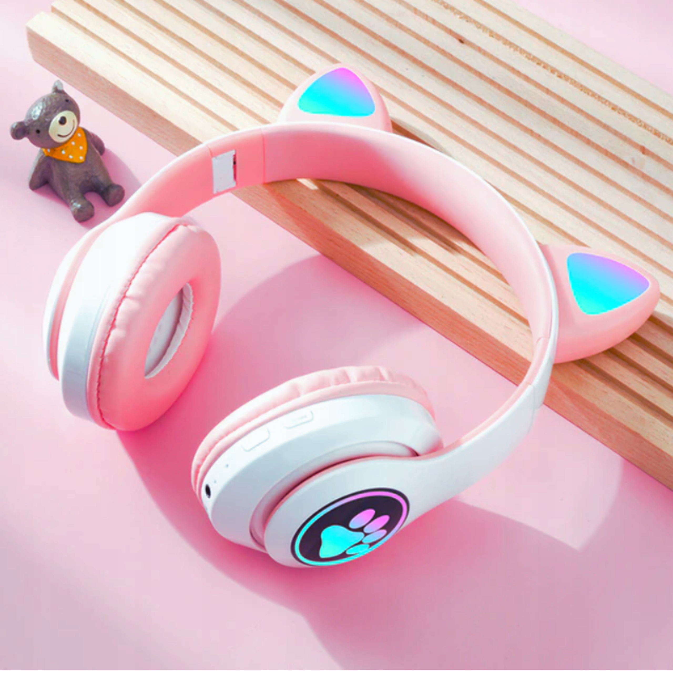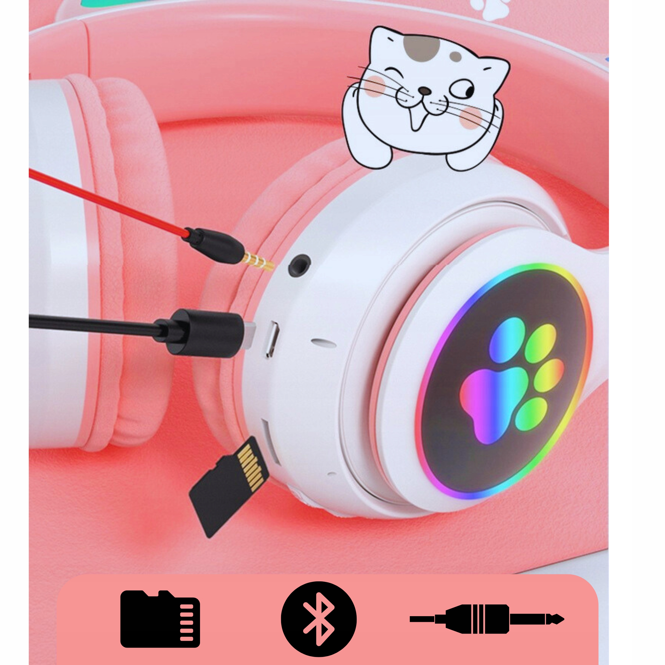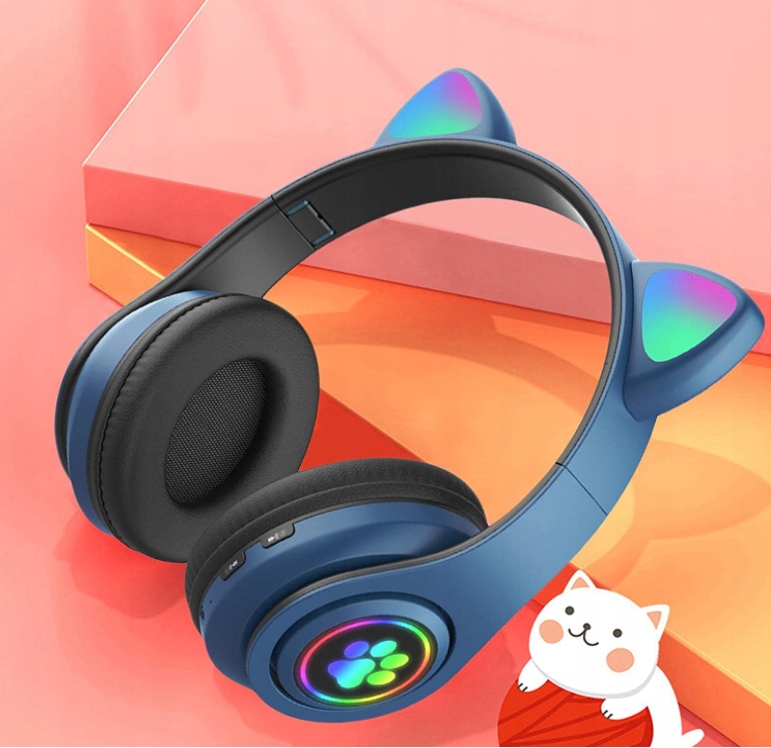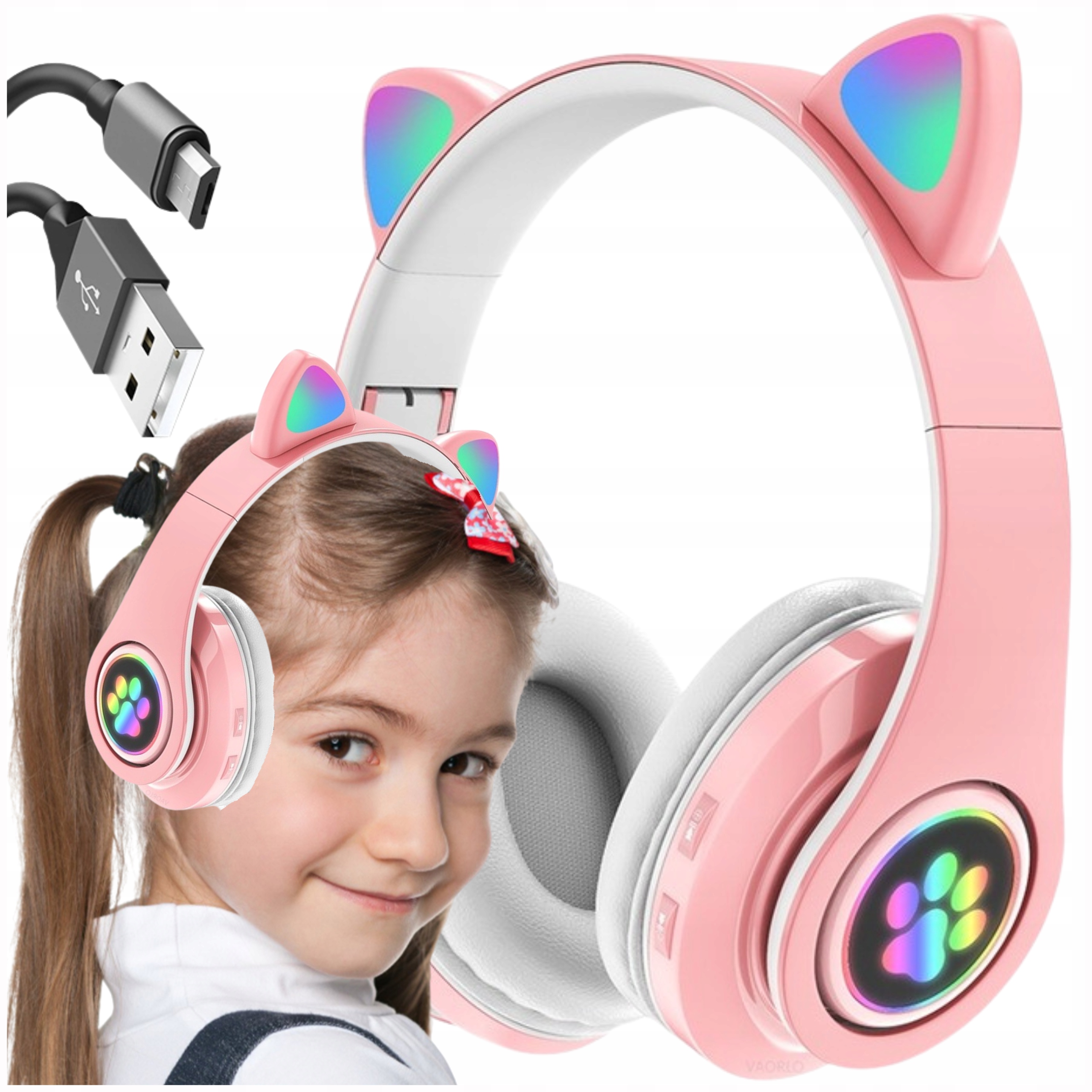 SŁUCHAWKI BEZPRZEWODOWE DLA DZIECI KOCIE USZY RGB BLUETOOTH LED NAUSZNE