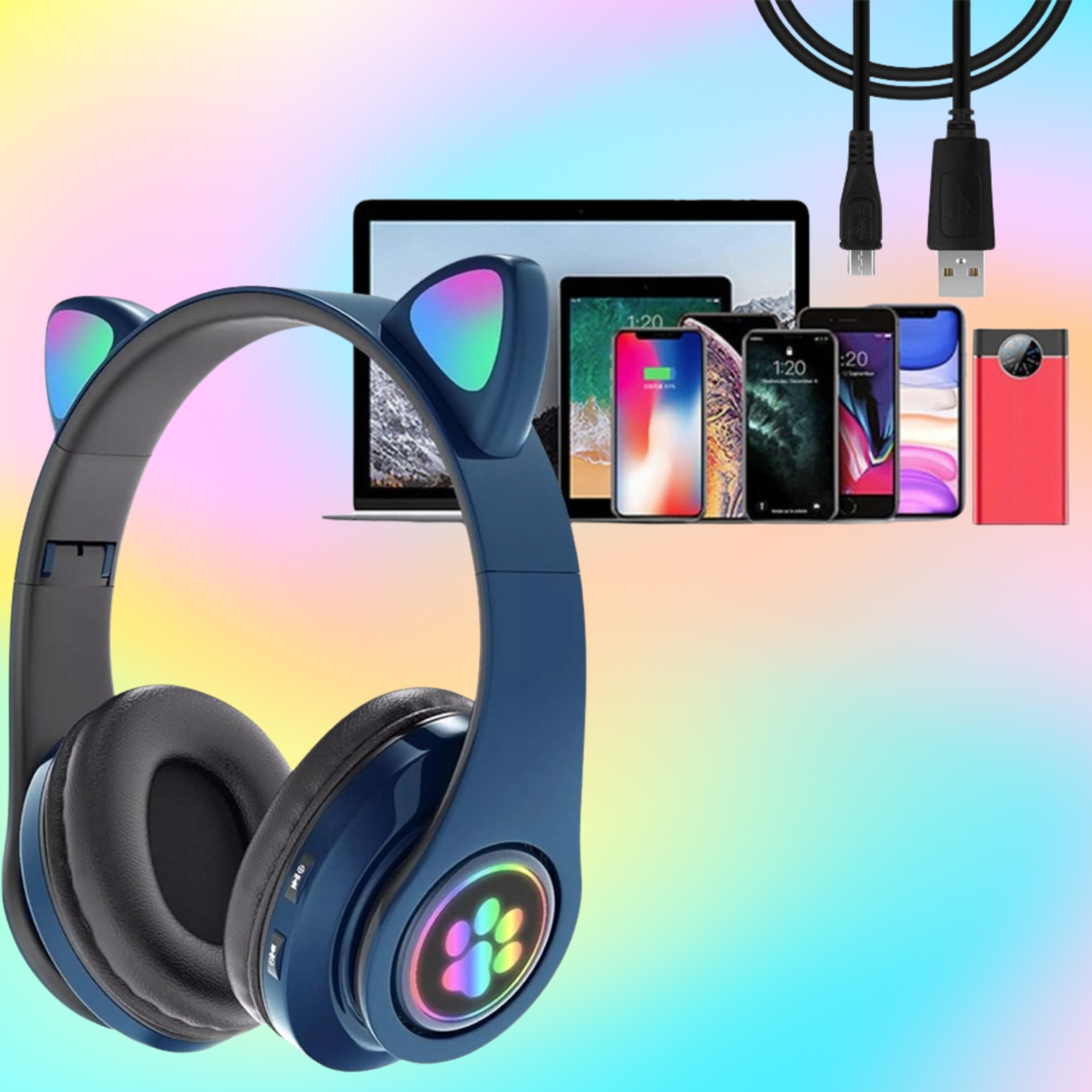 Słuchawki Bluetooth z kocimi uszami posiadają wiele przydatnych w codziennym użytkowaniu funkcji. Możesz słuchać na nich muzyki bezprzewodowo – wystarczy sparować je poprzez Bluetooth ze swoim telefonem lub laptopem. Jeśli bateria słuchawek rozładuje się, podłącz je przy pomocy dowolnego kabla micro-jack i słuchaj dalej!