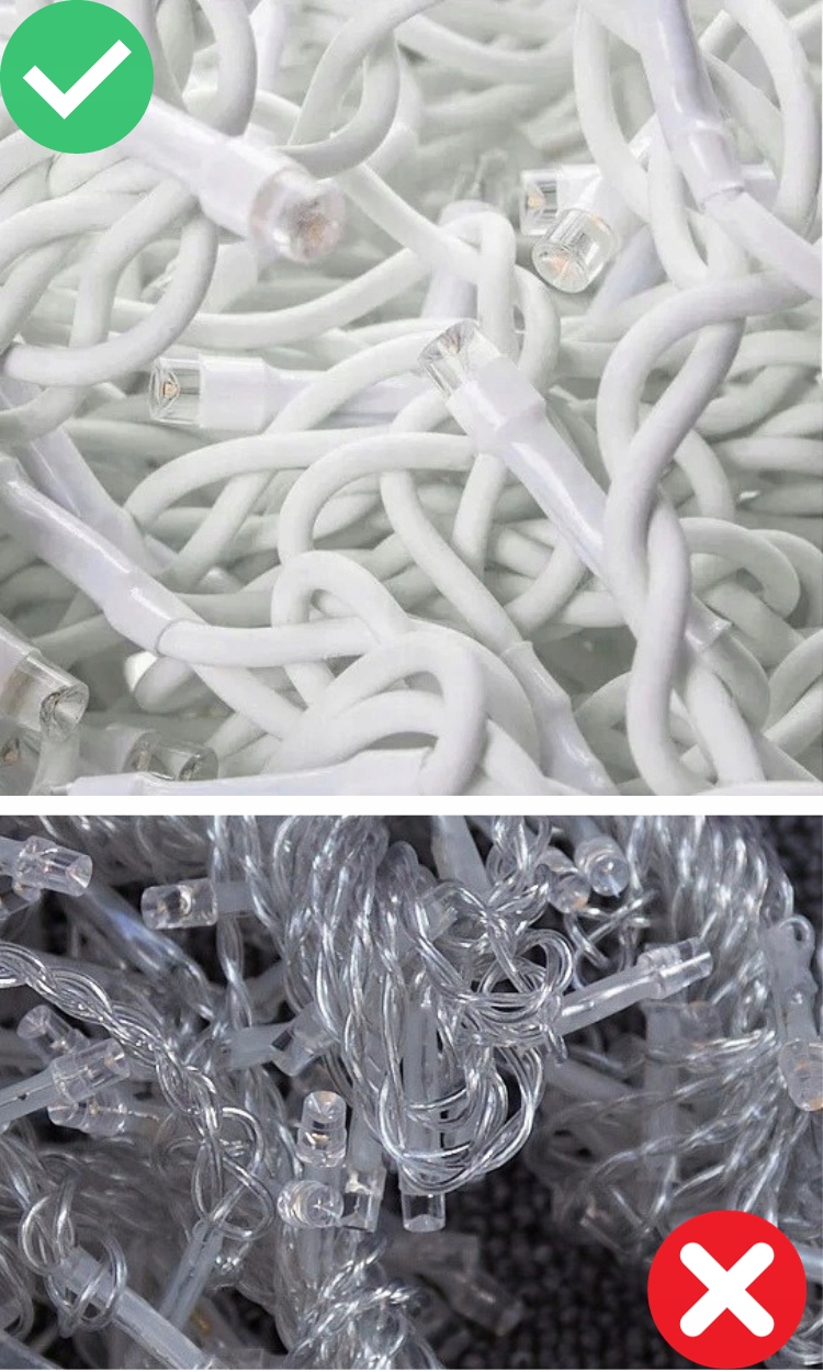 Poszczególne zwisy sopli znajdujące się w opakowaniu mogą być zwinięte na pół. Przed ich powieszeniem należy je rozwinąć w temperaturze pokojowej. Wtedy uzyskamy efekt trzech długości poszczególnych zwisów podanych na aukcji.