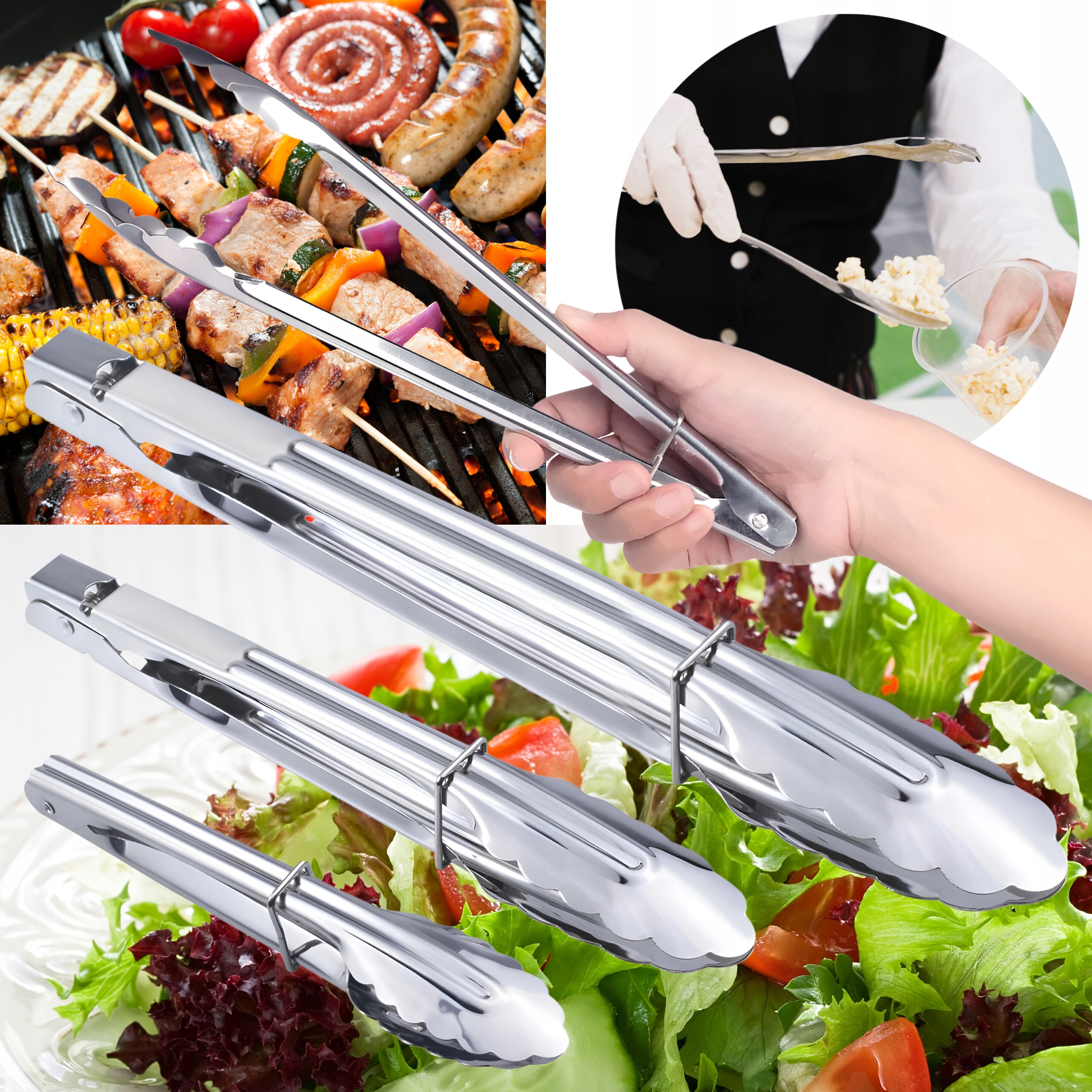 SZCZYPCE KUCHENNE METALOWE DO GRILLA SAŁATEK MIĘSA RUSZTU UNIWERSALNE 3 szt
