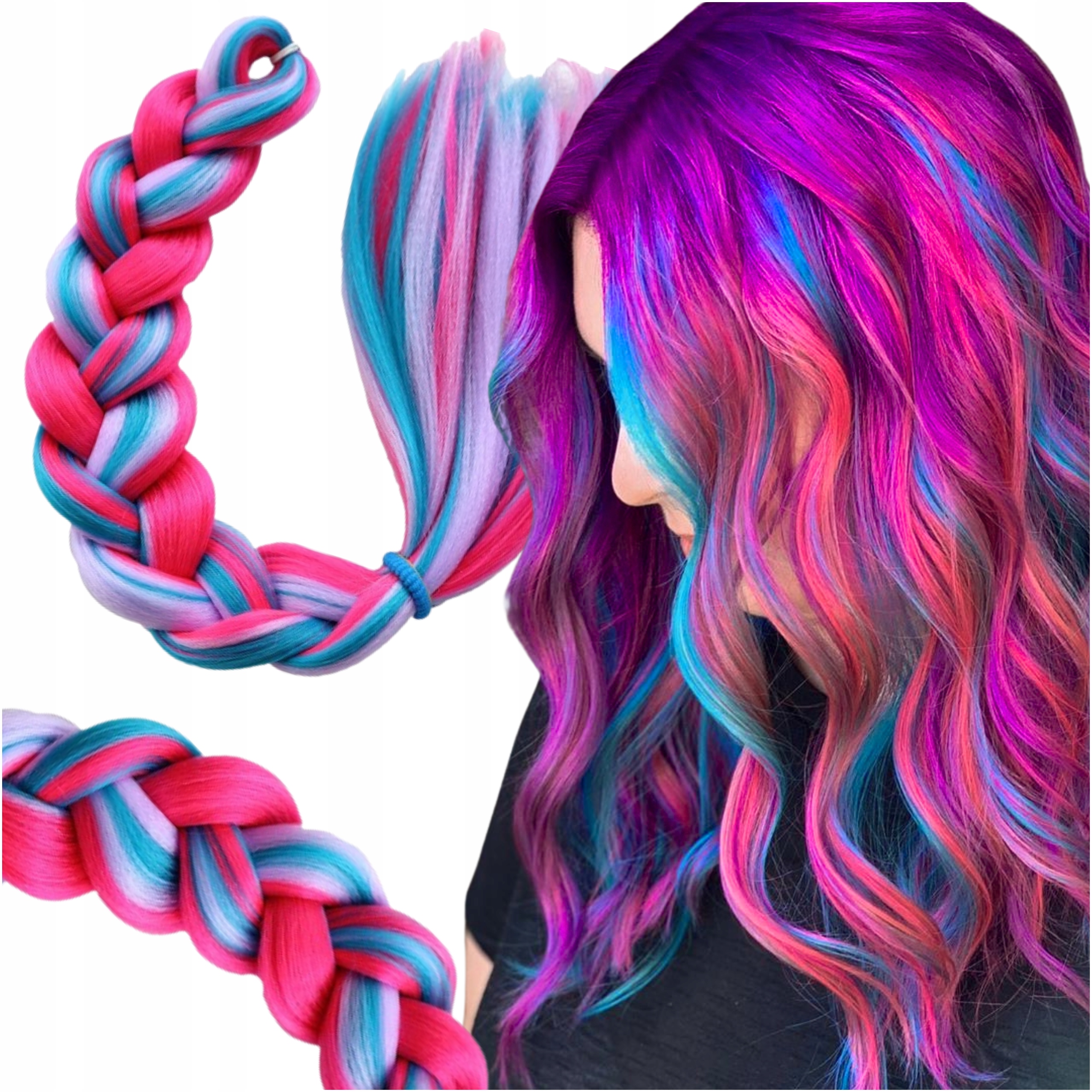 WŁOSY SYNTETYCZNE WARKOCZYKI KOLOROWE OMBRE Doczepiane Do Warkoczyków