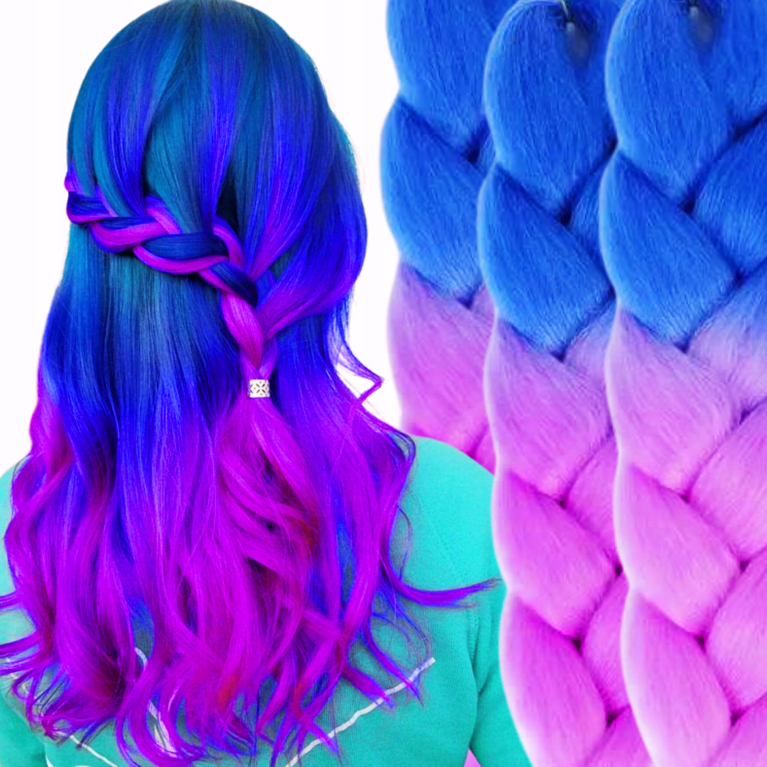 WŁOSY SYNTETYCZNE WARKOCZYKI KOLOROWE OMBRE Doczepiane Do Warkoczyków