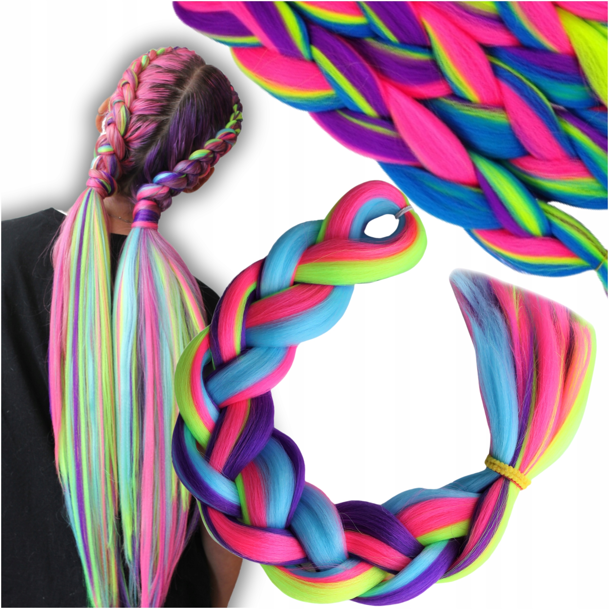 WŁOSY SYNTETYCZNE WARKOCZYKI KOLOROWE OMBRE Doczepiane Do Warkoczyków