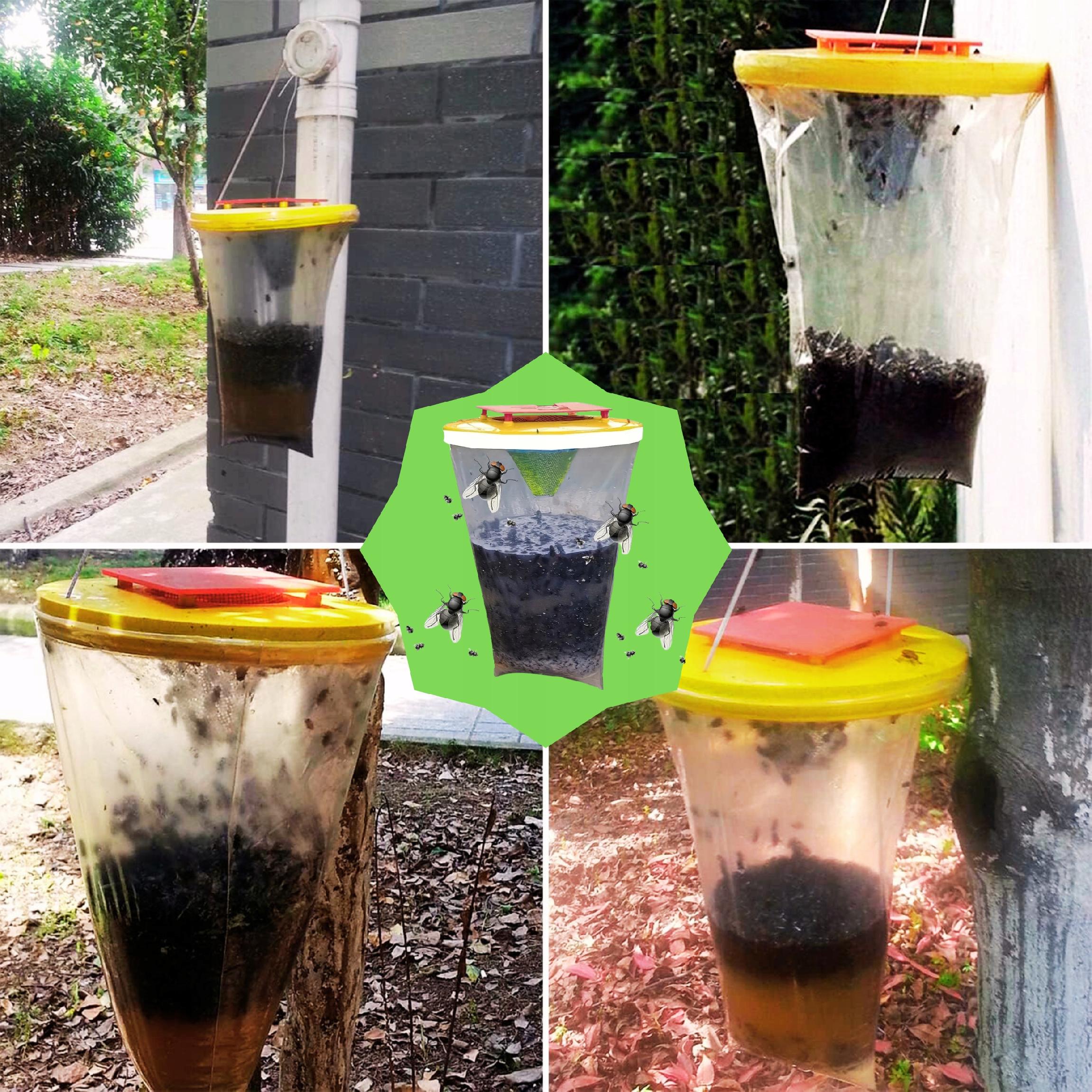 - Mieszanka będzie miała atrakcyjny zapach dla much, przyciągając je do wnętrza worka. Gdy muchy wejdą do pułapki, nie będą w stanie się wydostać.